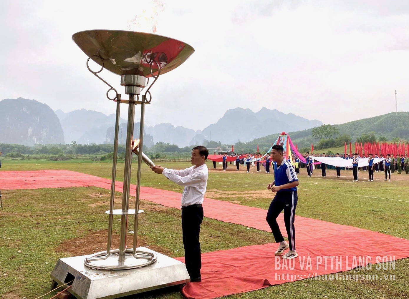 Đồng chí Bí thư Đảng ủy xã thực hiện nghi thức thắp đuốc tại lẽ khai mạc