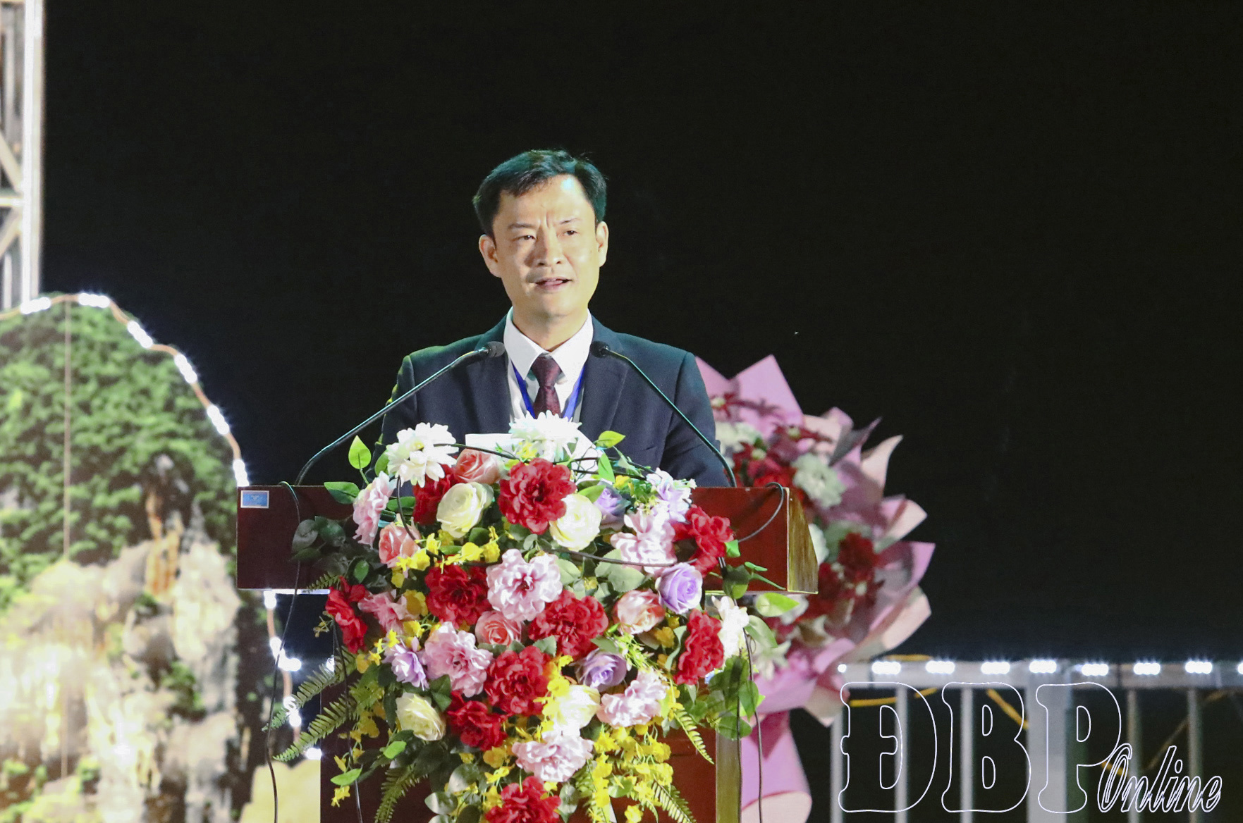 Chủ tịch UBND phường Mường Lay Nguyễn Đạt Long phát biểu tại lễ khai mạc.