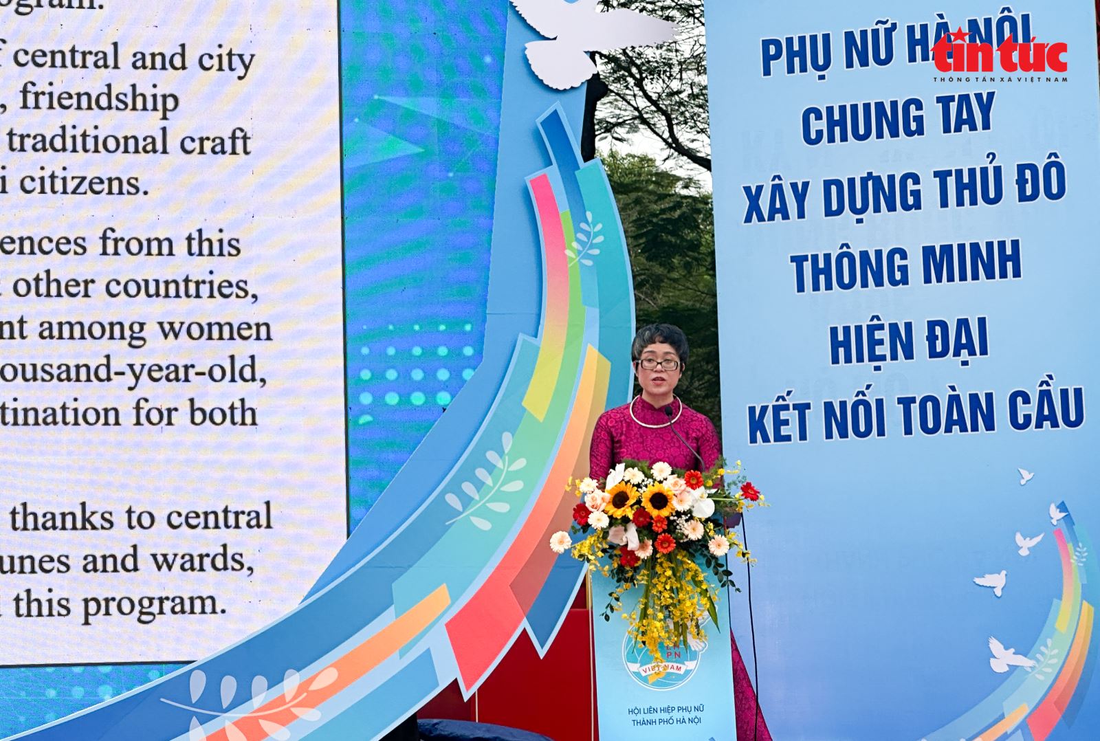 Phát biểu tại chương trình, bà Dương Minh Ánh, Phó Chủ tịch Hội Liên hiệp Phụ nữ (LHPN) TP Hà Nội cho biết, Festival “Phụ nữ Thủ đô vì hòa bình, phát triển” được tổ chức nhằm khơi dậy niềm tự hào của cán bộ, hội viên và các tầng lớp phụ nữ Thủ đô về truyền thống của phong trào phụ nữ quốc tế, truyền thống vẻ vang của phụ nữ Việt Nam; truyền thống của Thủ đô ngàn năm văn hiến, anh hùng, Thành phố vì hòa bình; lan tỏa tinh thần đoàn kết, giao lưu, kết nối, hội nhập và phát triển giữa phụ nữ Hà Nội và phụ nữ quốc tế, vì bình đẳng giới và sự tiến bộ của phụ nữ.