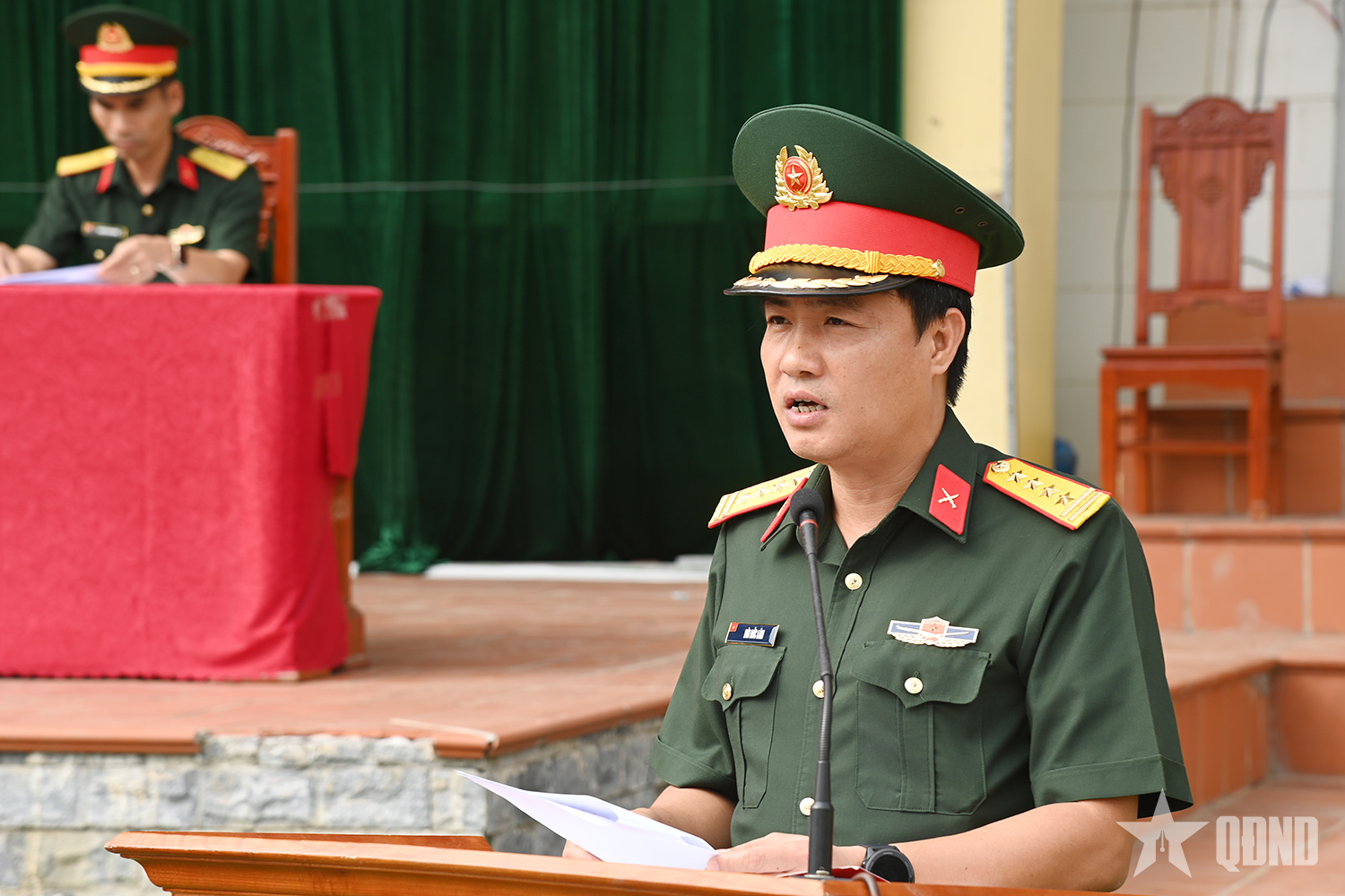 Đại tá Bùi Đức Lâm, Phó chỉ huy trưởng, tham mưu trưởng Bộ CHQS tỉnh Quảng Ninh phát biểu khai mạc giải thể thao.