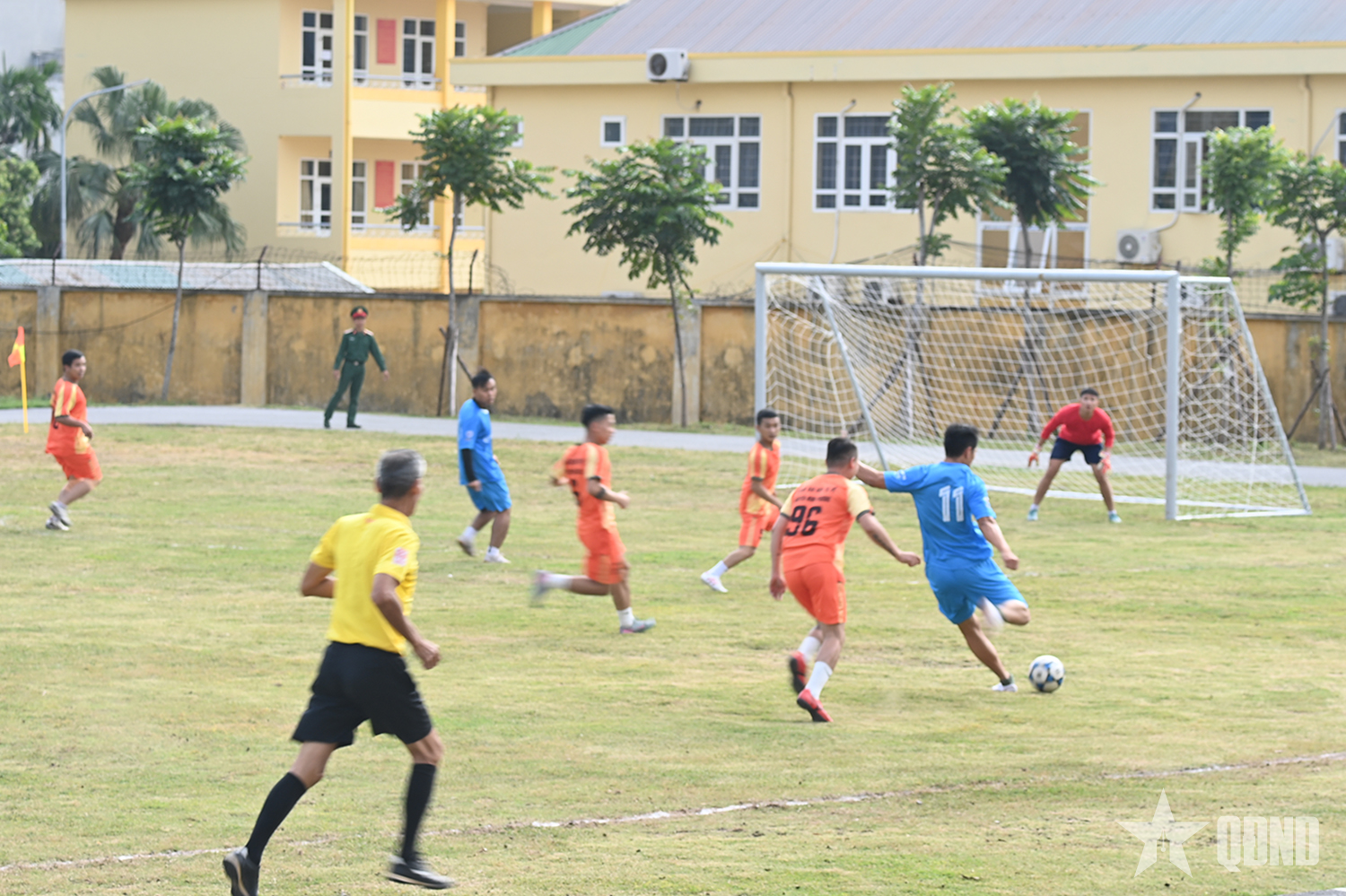 Ngay sau khai mạc diễn ra trận thi đấu giữa đội bóng đá nam Cơ quan Bộ CHQS tỉnh gặp đội bóng đá nam Đại đội tự vệ.