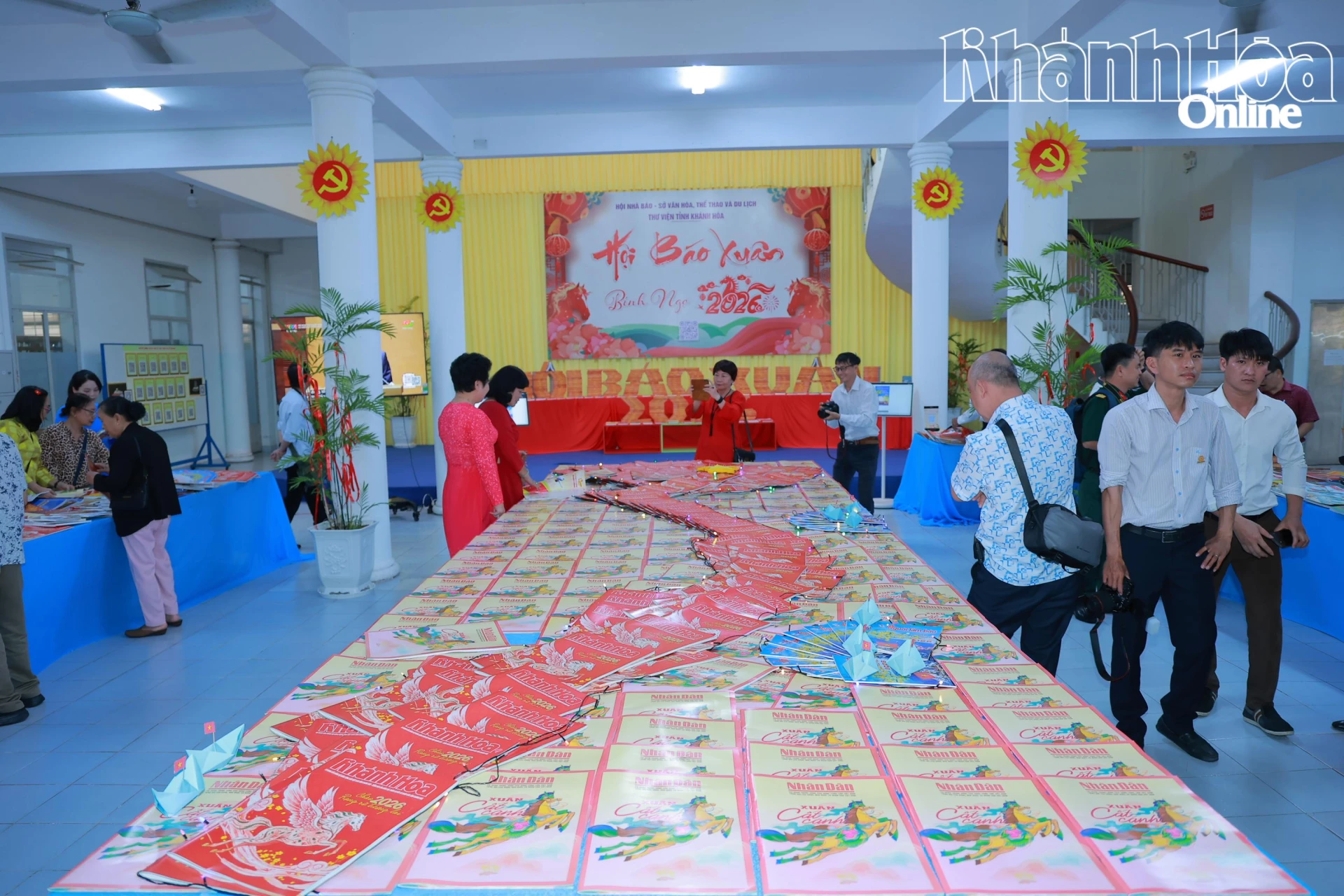 Hội báo xuân Bính Ngọ 2026 diễn ra từ ngày 9 đến 26-2, trưng bày, giới thiệu hơn 1.000 ấn phẩm báo chí, các tài liệu tuyên truyền của tỉnh Khánh Hòa và cả nước. Theo nhận định của Ban tổ chức, bên cạnh phản ánh những sự kiện chính trị, kinh tế, văn hóa - xã hội, an ninh - quốc phòng nổi bật, các ấn phẩm báo xuân năm nay còn dành nhiều sự quan tâm tuyên truyền các nội dung liên quan đến Đại hội Đảng toàn quốc lần thứ XIV; những sự kiện lớn của đất nước và của tỉnh trong thực hiện chính quyền địa phương hai cấp, tinh gọn bộ máy hành chính, sáp nhập đơn vị hành chính… Nhiều tờ báo đã cho thấy sự đầu tư, chăm chút trong việc trình bày bìa báo xuân đẹp mắt, ấn tượng.