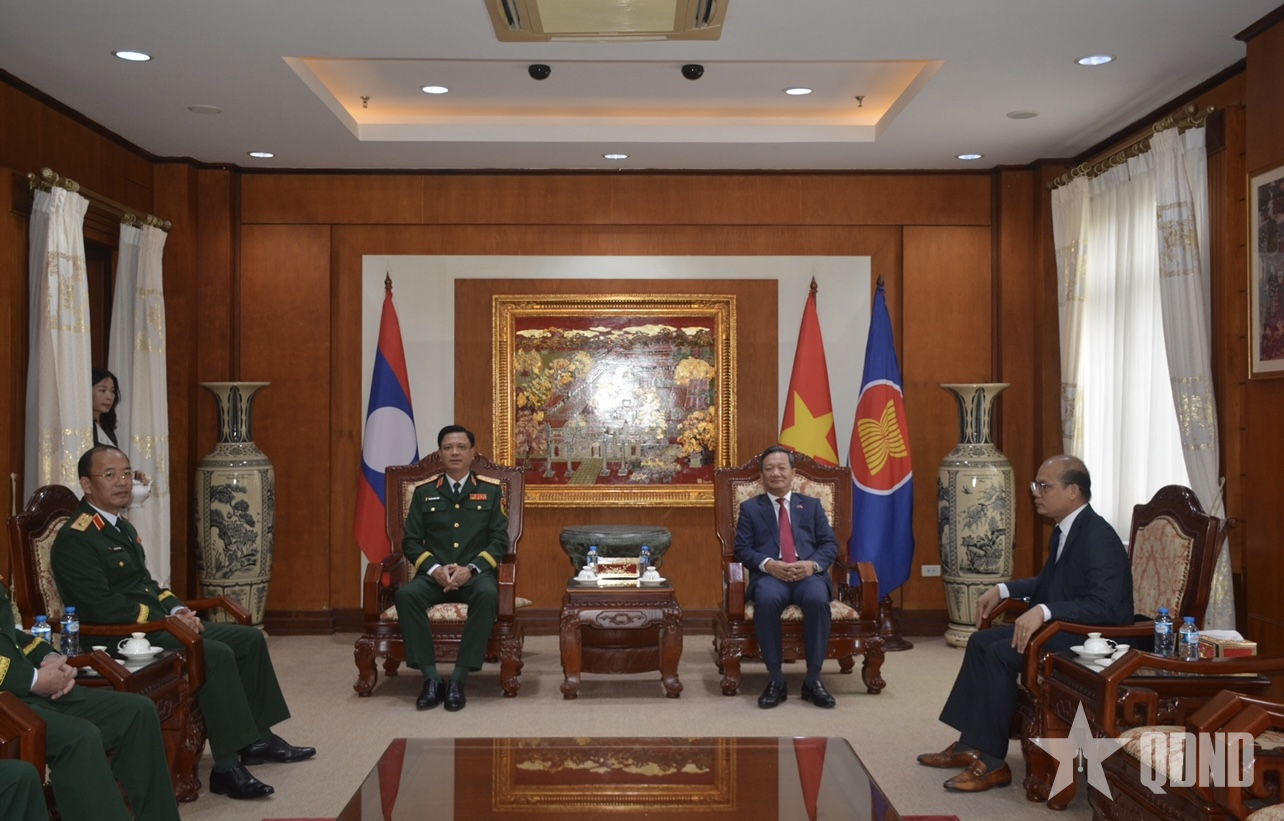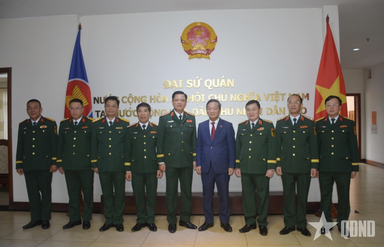 Thượng tướng Nguyễn Trường Thắng và đoàn đại biểu Bộ Quốc phòng Việt Nam đến thăm làm việc tại Đại sứ quán Việt Nam tại Lào.