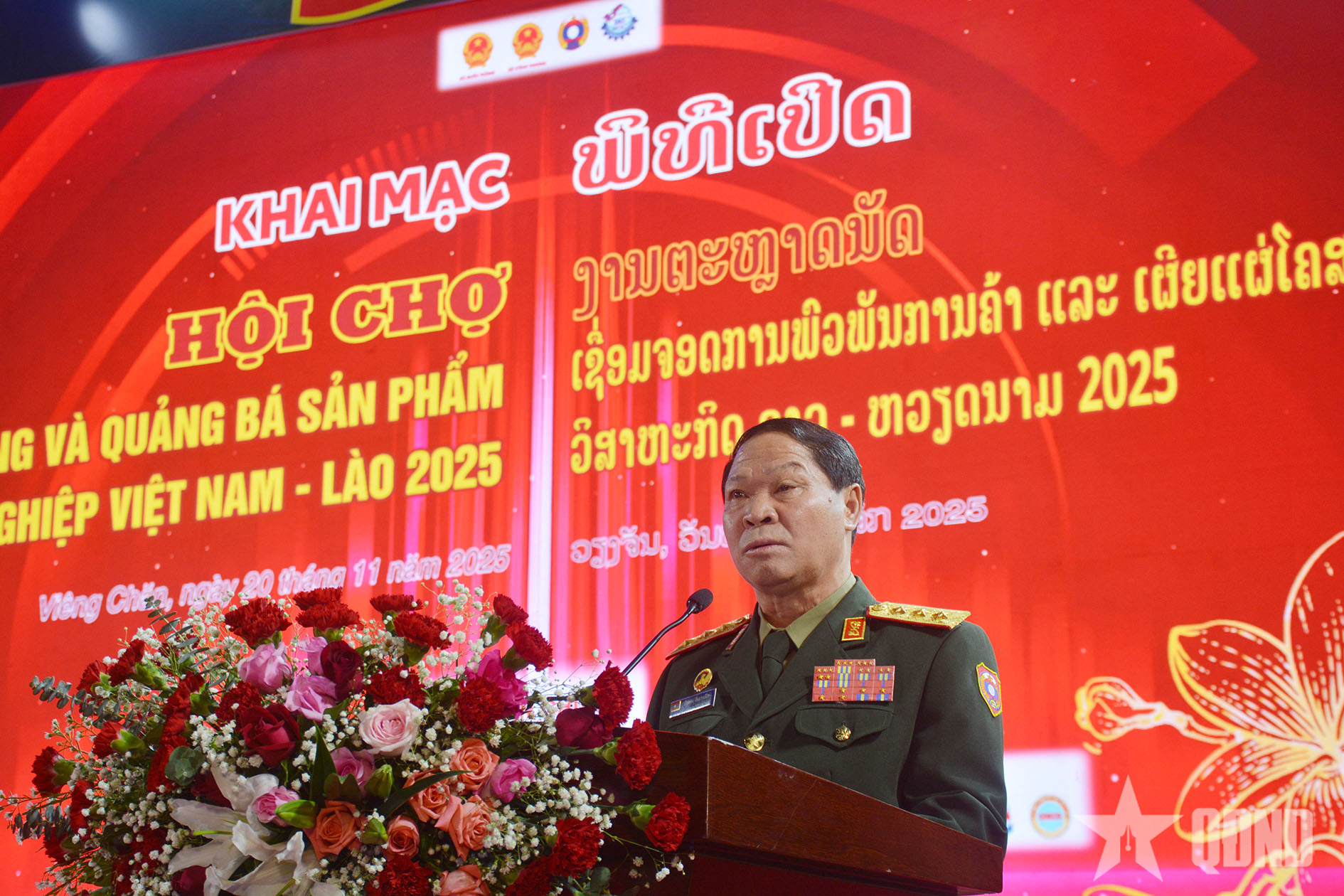 Thượng tướng Vongsone Inpanphim đánh giá cao ý nghĩa quan trọng của Hội chợ kết nối giao thương và quảng bá sản phẩm doanh nghiệp Việt Nam - Lào năm 2025; tin tưởng Hội chợ sẽ tạo cơ hội để doanh nghiệp hai nước gặp gỡ, trao đổi, tìm kiếm cơ hội mở rộng quan hệ thương mại, hợp tác.