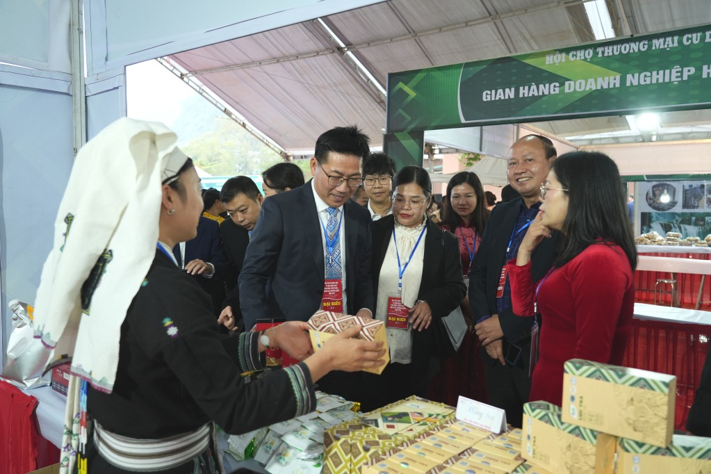 Sau lễ khai mạc, các đại biểu hai bên tham quan các gian hàng trưng bày sản phẩm tại hội chợ, bày tỏ sự quan tâm, đánh giá cao nỗ lực của các đơn vị, doanh nghiệp trong việc đưa các sản phẩm đặc trưng, sản phẩm OCOP, nông sản an toàn đến với người tiêu dùng. Đồng thời, mong muốn các doanh nghiệp tiếp tục nâng cao chất lượng, mẫu mã, đáp ứng yêu cầu thị trường, góp phần thúc đẩy hoạt động thương mại biên giới ngày càng phát triển.