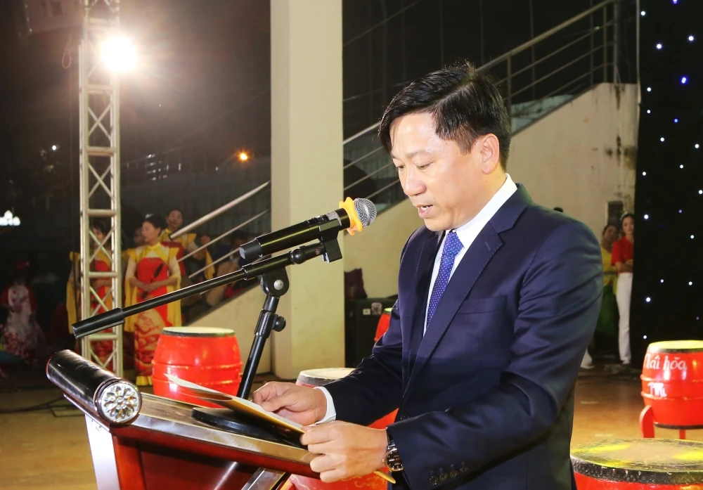 Đồng chí Lê Ngọc Khánh, Chủ tịch UBND xã Nga Sơn phát biểu khai mạc chương trình.