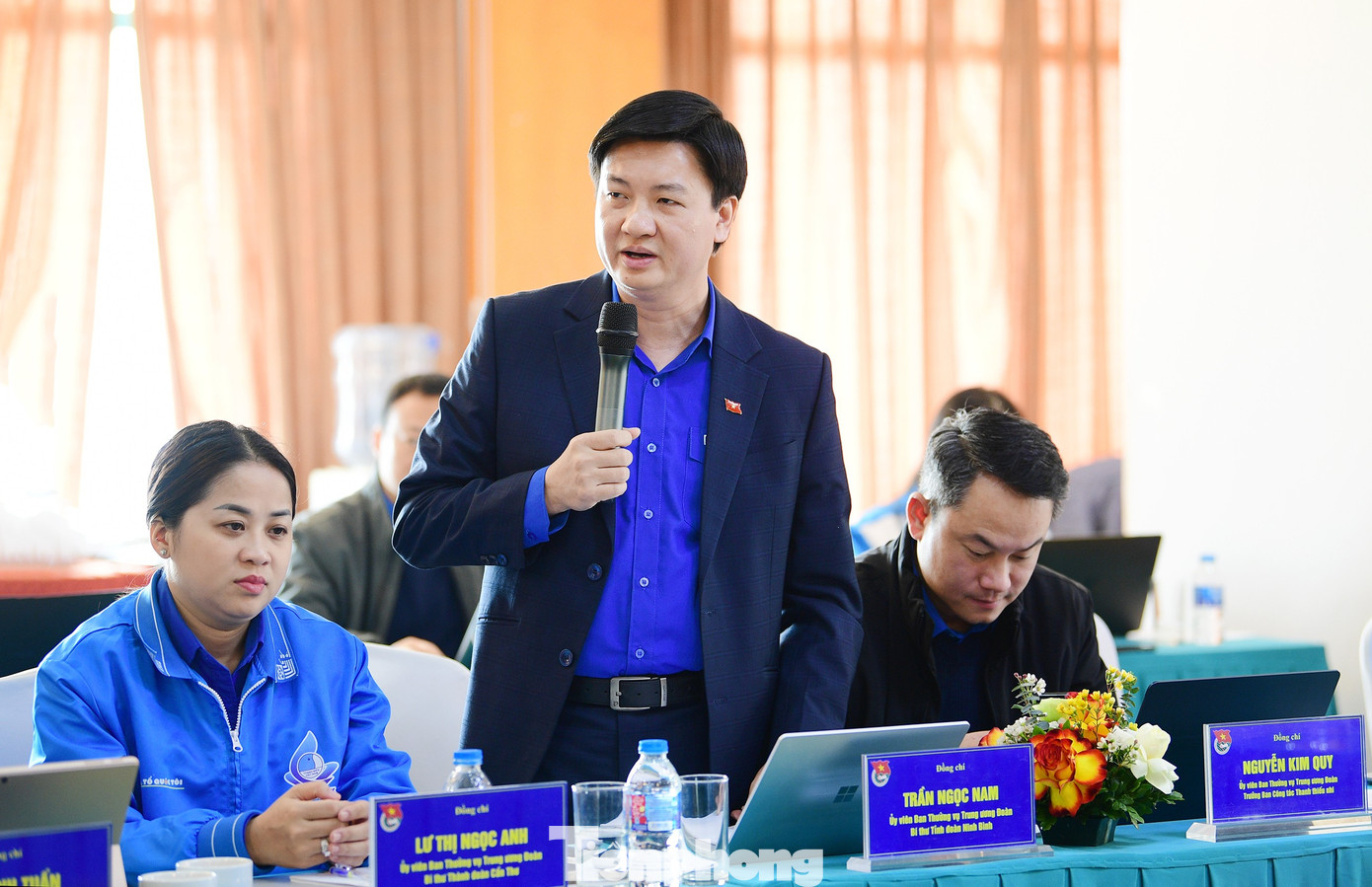 Anh Trần Ngọc Nam - Ủy viên Ban Thường vụ T.Ư Đoàn, Bí thư Tỉnh Đoàn Ninh Bình phát biểu tại hội nghị. Ảnh: Xuân Tùng
