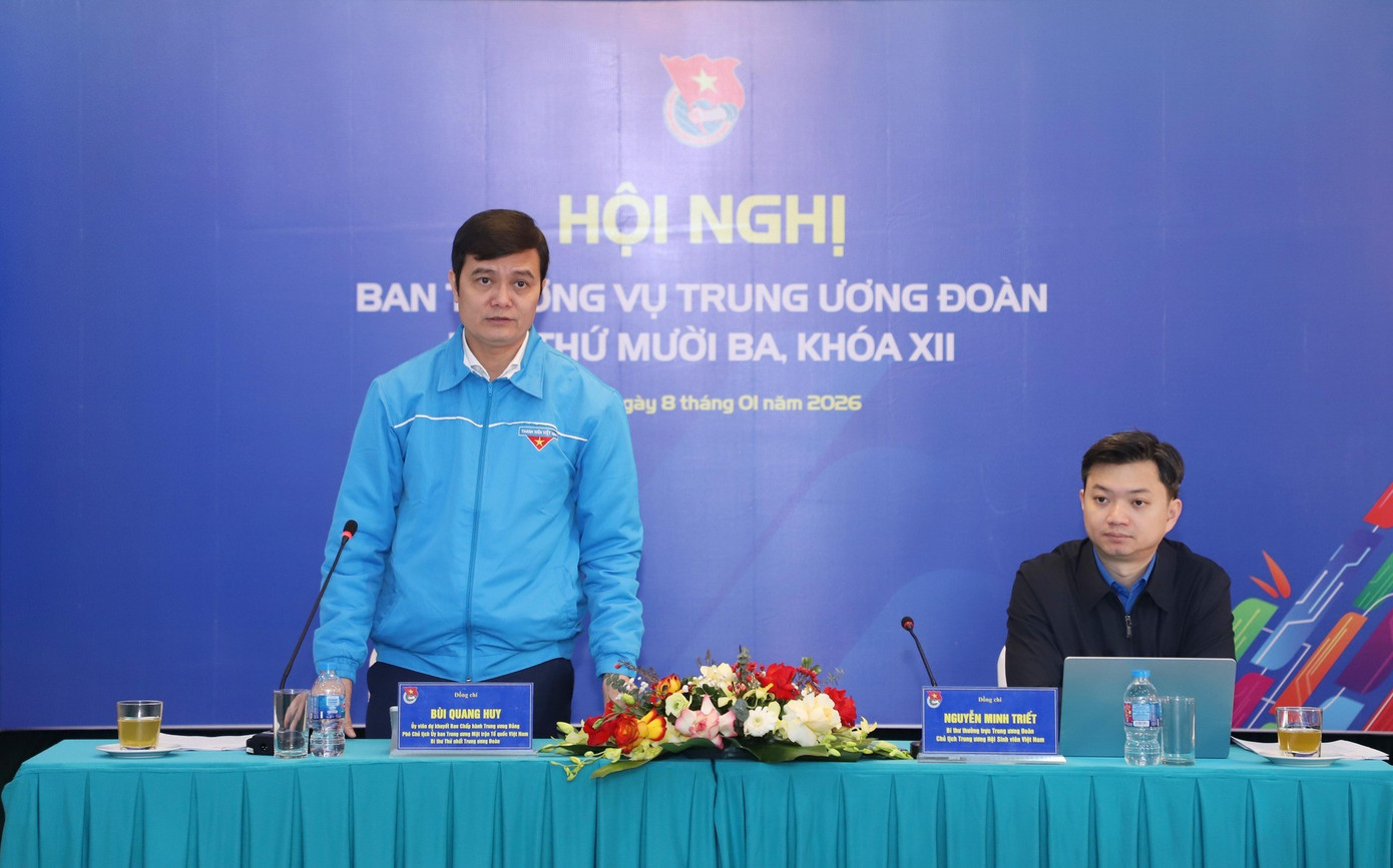 Sáng 8/01, tại Hà Nội, Hội nghị Ban Thường vụ T.Ư Đoàn lần thứ 13, khóa XII đã chính thức khai mạc. Hội nghị do anh Bùi Quang Huy – Ủy viên dự khuyết T.Ư Đảng, Bí thư thứ nhất T.Ư Đoàn và anh Nguyễn Minh Triết – Bí thư thường trực T.Ư Đoàn, Chủ tịch T.Ư Hội Sinh viên Việt Nam đồng chủ trì.
