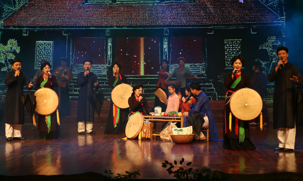 Tiết mục dự thi nội dung sân khấu ca nhạc quan họ của đoàn nghệ thuật quần chúng xã Tiên Du.