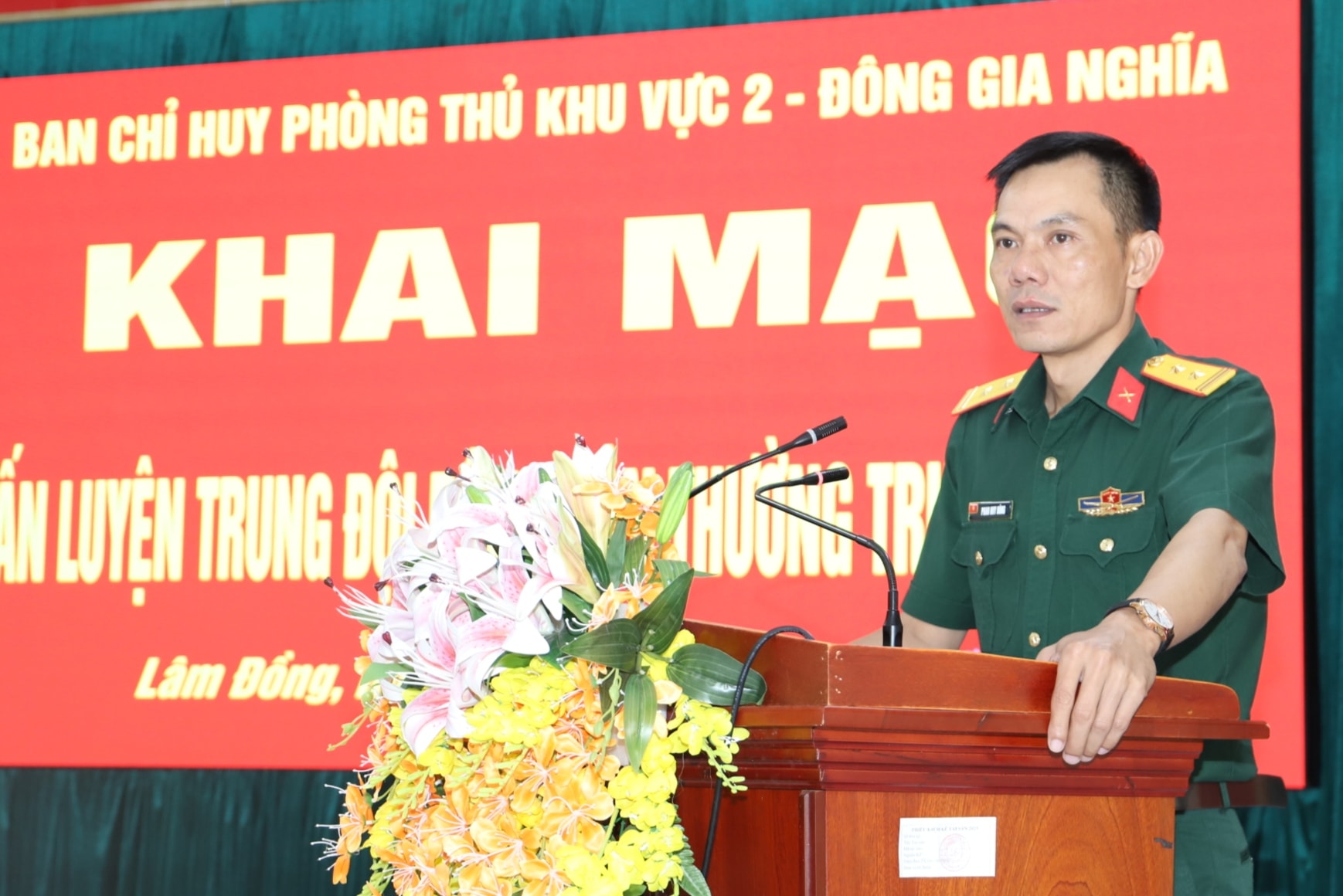 Phát biểu tại lễ khai mạc, Trung tá Phan Huy Hùng, Chỉ huy trưởng Ban Chỉ huy Phòng thủ Khu vực 2 - Đông Gia Nghĩa yêu cầu lực lượng dân quân thường trực quán triệt mục tiêu, yêu cầu huấn luyện; nêu cao tinh thần trách nhiệm, ý thức tổ chức kỷ luật; tích cực học tập, rèn luyện, nắm chắc kỹ thuật, chiến thuật, đáp ứng yêu cầu nhiệm vụ trong mọi tình huống.