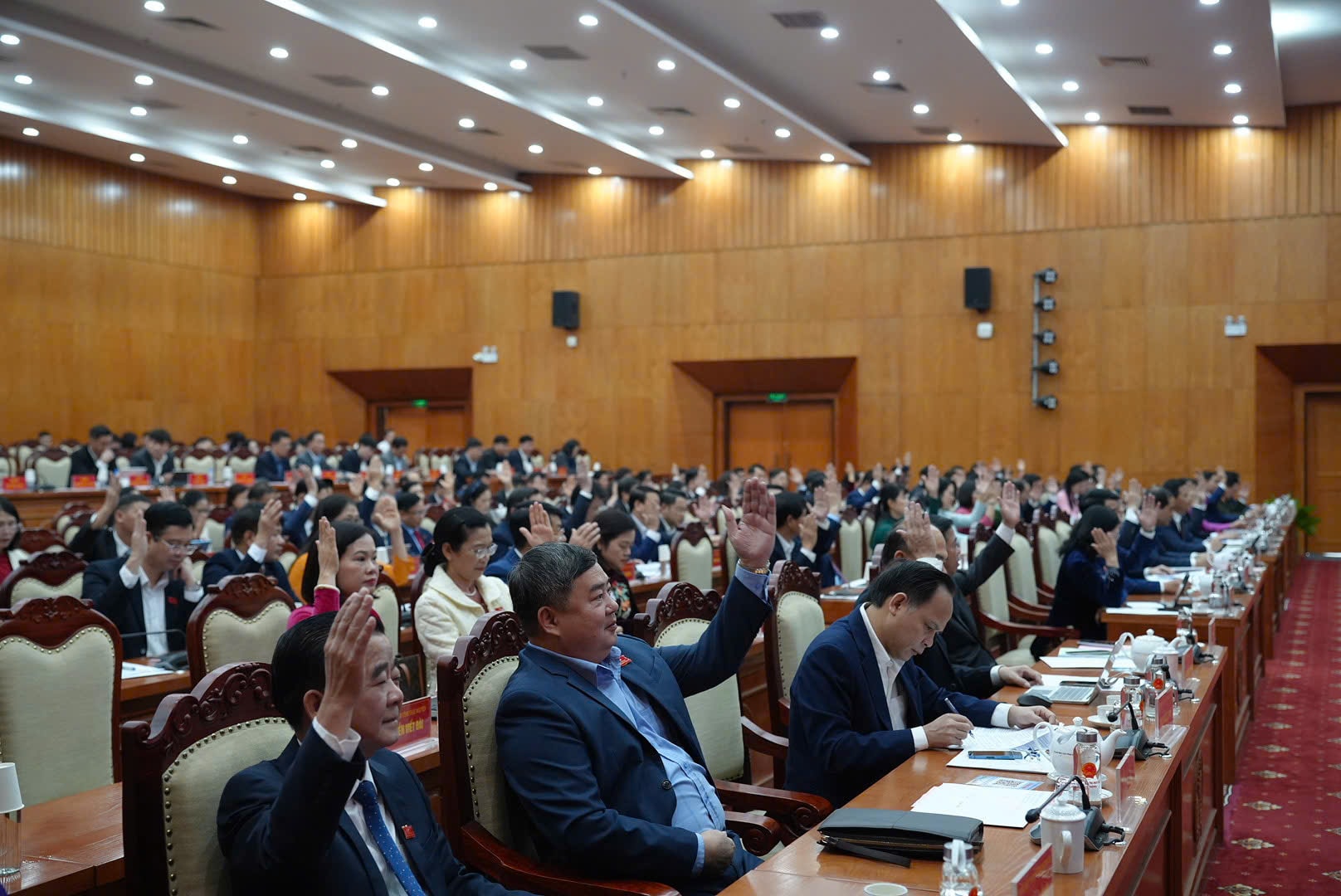 Các đại biểu biểu quyết thông qua chương trình kỳ họp. Ảnh: Nguyễn Ánh