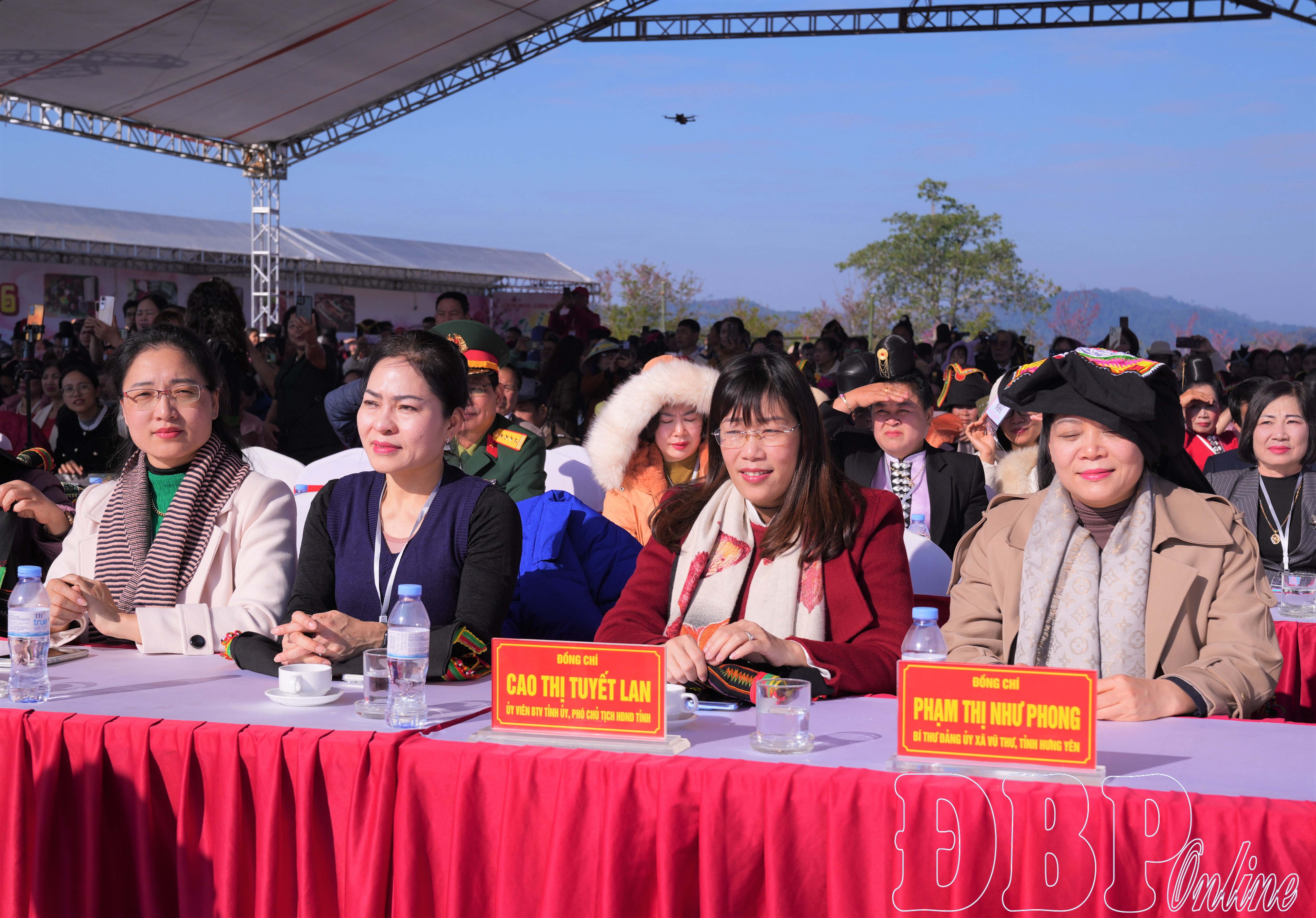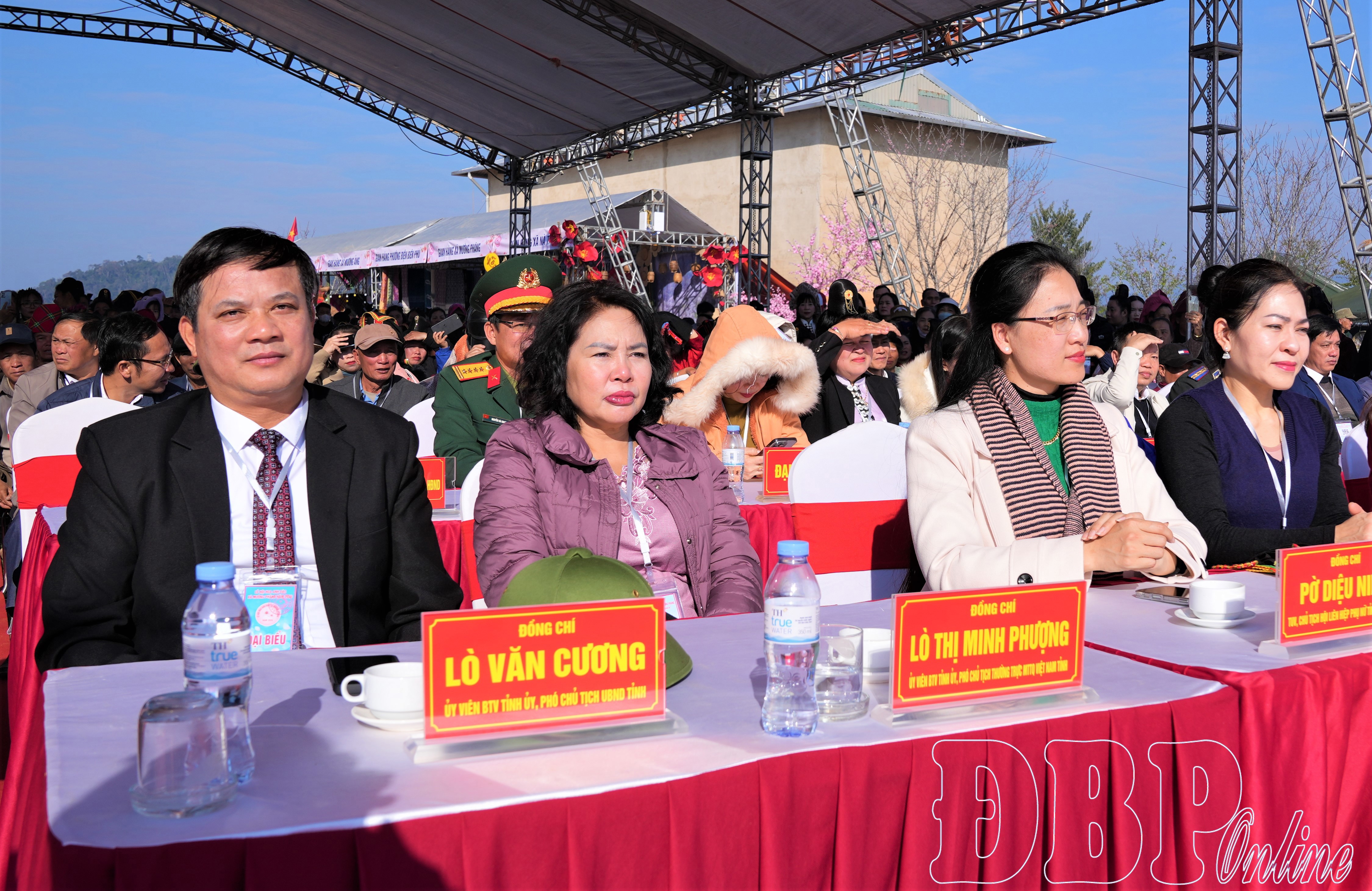 Các đồng chí: Cao Thị Tuyết Lan, Ủy viên Ban Thường Tỉnh ủy, Phó Chủ tịch HĐND tỉnh; Lò Văn Cương, Ủy viên Ban Thường vụ Tỉnh ủy, Phó Chủ tịch Thường trực UBND tỉnh; Lò Thị Minh Phượng, Ủy viên Ban Thường vụ Tỉnh ủy, Phó Chủ tịch Thường trực Ủy ban MTTQ tỉnh; đại diện lãnh đạo các cơ quan, sở, ngành tỉnh, các địa phương trên địa bàn và xã Vũ Thư (tỉnh Hưng Yên), cùng đông đảo người dân, du khách chung vui ngày hội.