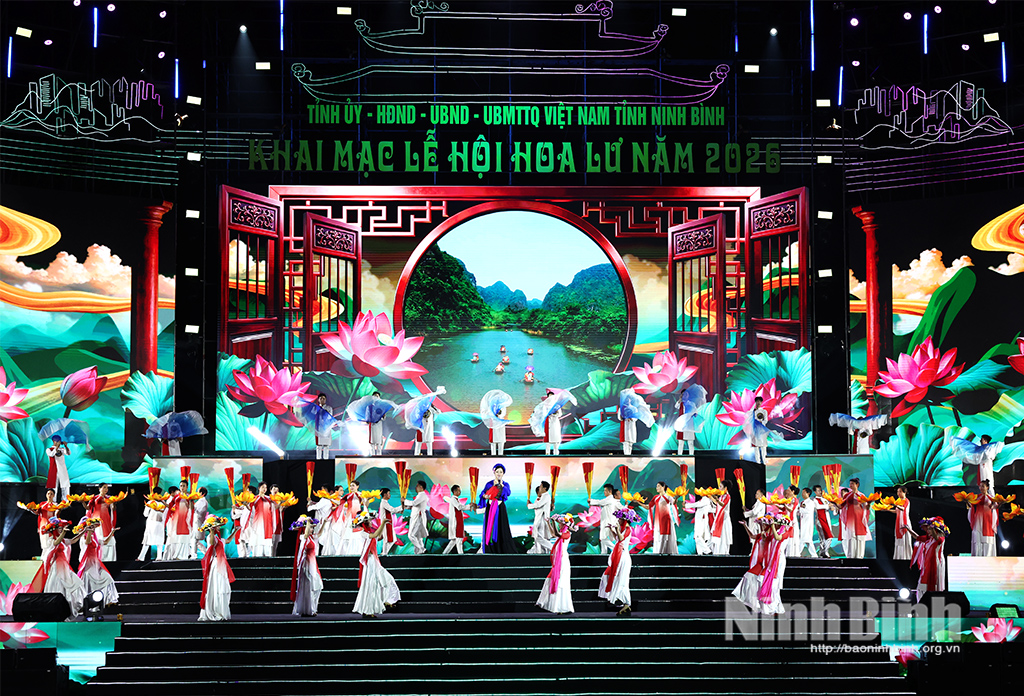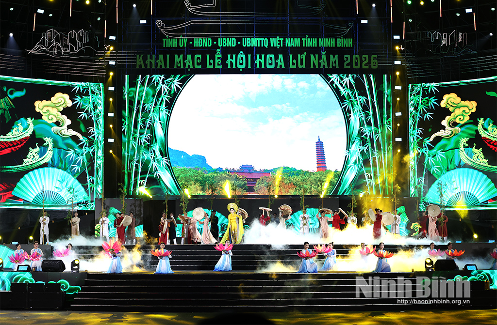 Chương trình nghệ thuật đặc sắc tại khai mạc Lễ hội Hoa Lư năm 2026 có chủ đề “Ninh Bình - Linh khí ngàn năm, vươn mình tỏa sáng” với sự tham gia của các gương mặt: Hoa hậu đại sứ du lịch quốc tế Phan Thị Mơ, NSND Thanh Loan, NSND Mai Thủy, ca sĩ An Thu An, Xuân Hảo, Đinh Trang, Thành Lê, Huy Quyết, Lưu Quốc Vượng, Dương Đức, Linh Lanna, Rapper Huy Raw cùng các nghệ sỹ, diễn viên Nhà hát Sân khấu truyền thống quốc gia Việt Nam; Nhà hát Nghệ thuật truyền thống tỉnh Ninh Bình; học sinh Trường THPT Đinh Tiên Hoàng, chiến sỹ Sư đoàn 390 Quân đoàn 12…