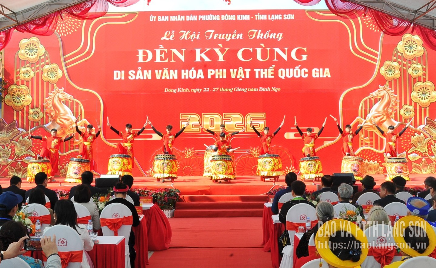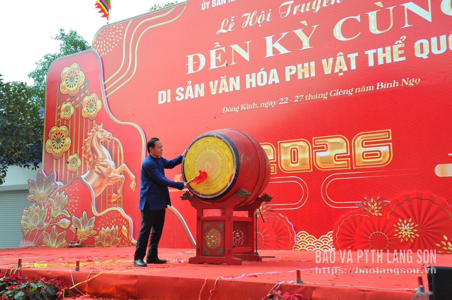 Lãnh đạo Đảng ủy phường Đông Kinh đánh trống khai hội Đền Kỳ Cùng