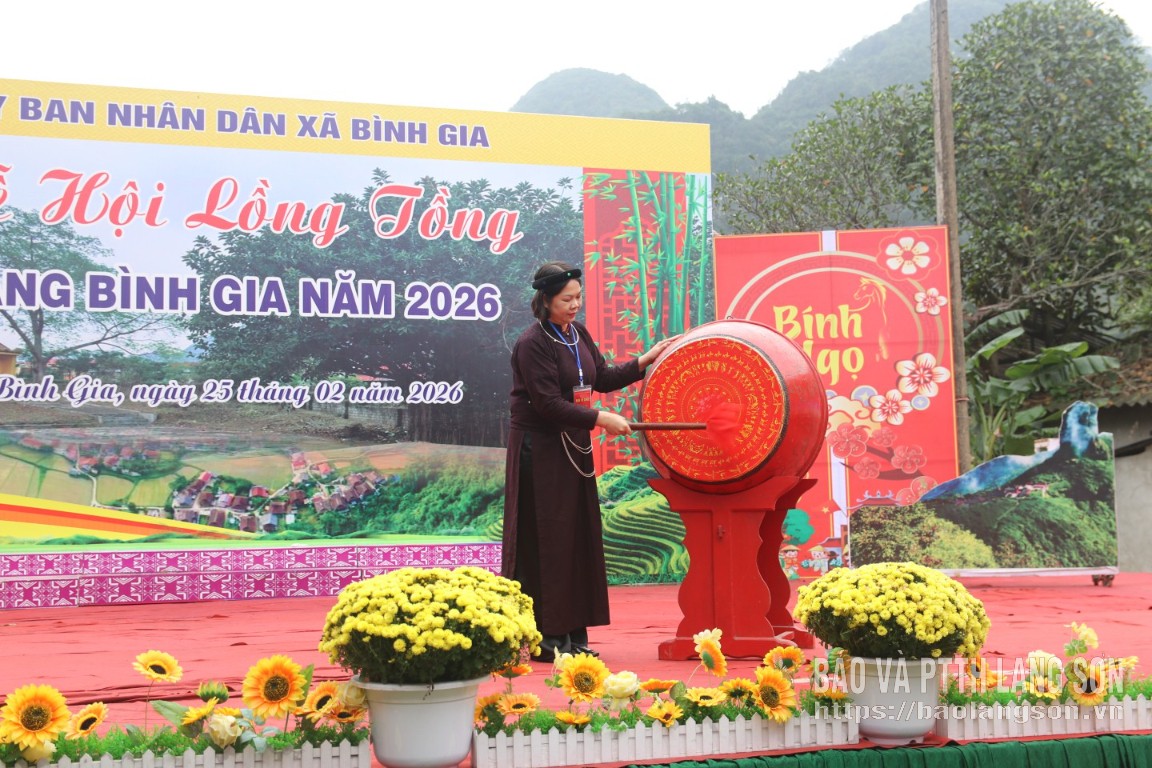 Lãnh đạo UBND xã Bình Gia đánh trống khai hội