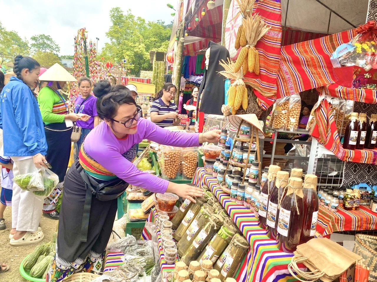 Các gian hàng bày bán nông sản tại không gian lễ hội