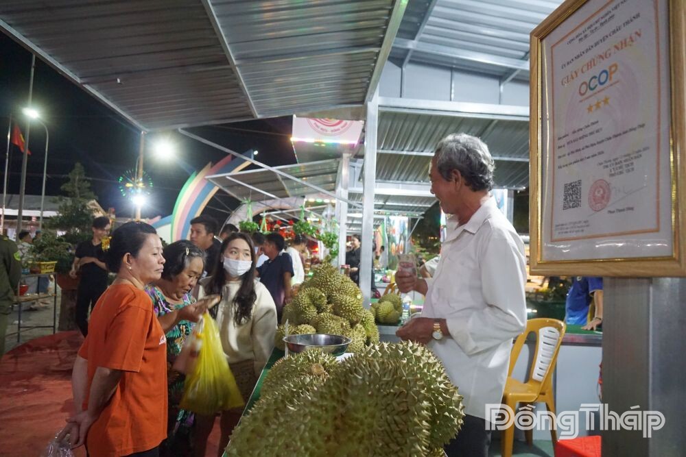 Sản phẩm sầu riêng của Hợp tác xã sầu riêng Phú Hựu đạt chứng nhận OCOP được giới thiệu tại lễ hội.