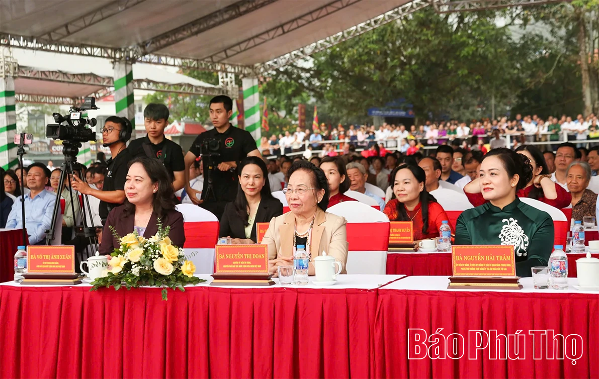 Về phía tỉnh Phú Thọ có các đồng chí: Phạm Đại Dương - Ủy viên Ban Chấp hành Trung ương Đảng, Bí thư Tỉnh ủy; Trần Duy Đông - Ủy viên dự khuyết Ban Chấp hành Trung ương Đảng, Phó Bí thư Tỉnh ủy, Chủ tịch UBND tỉnh; các đồng chí Thường trực Tỉnh ủy, Ủy viên Ban Thường vụ Tỉnh ủy, Ủy viên Ban Chấp hành Đảng bộ tỉnh; lãnh đạo HĐND, UBND, Ủy ban MTTQ, Đoàn ĐBQH tỉnh; lãnh đạo các sở, ban, ngành, địa phương của tỉnh cùng đông đảo Nhân dân địa phương và du khách thập phương.