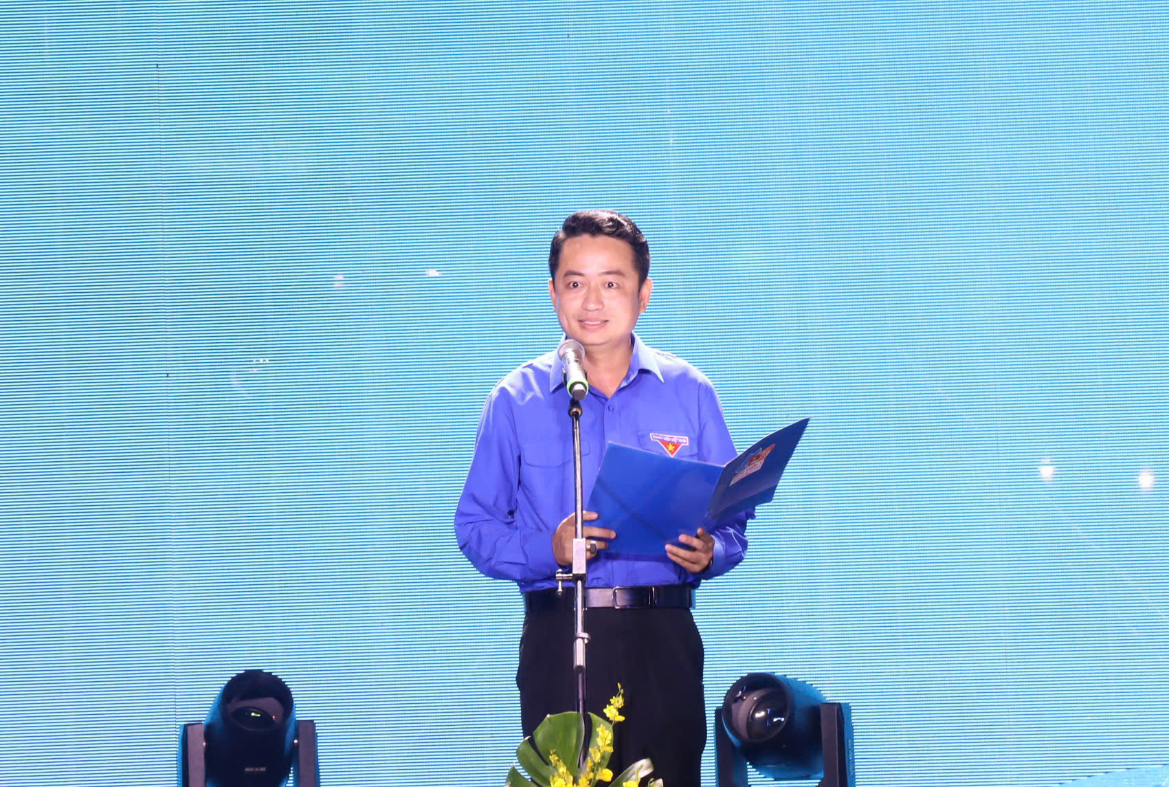Anh Ngô Minh Hải, Bí thư Thành Đoàn TP.HCM, thực hiện nghi thức thắp đuốc truyền thống khai mạc Lễ hội Thanh niên TP.HCM - Youth Fest 2026. Ảnh: HẢI NHI