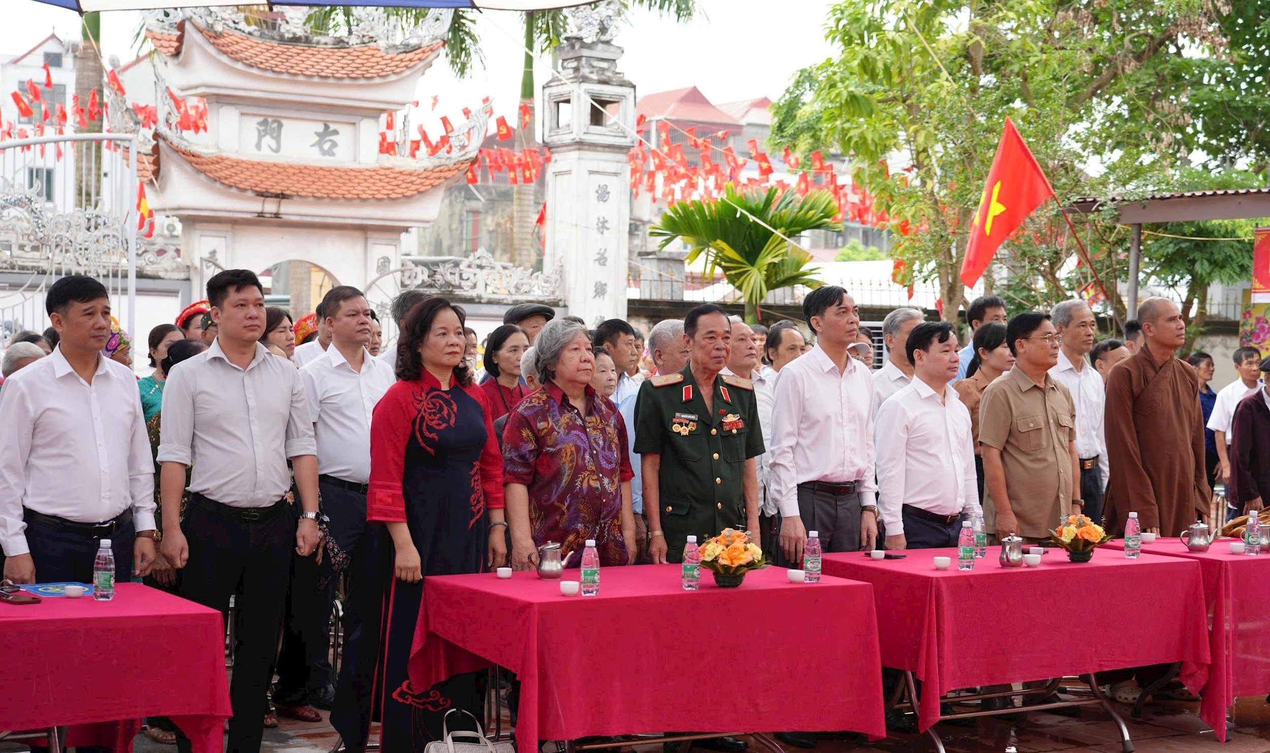 Các đại biểu tham dự khai mạc Lễ hội truyền thống và khánh thành dự án tu bổ, tôn tạo di tích đình Thọ Lão (giai đoạn 1). Ảnh: Đào Thắm