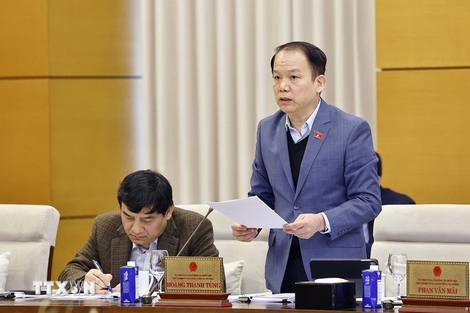 Chủ nhiệm Ủy ban Pháp luật và Tư pháp của Quốc hội Hoàng Thanh Tùng phát biểu. (Ảnh: Doãn Tấn/TTXVN)