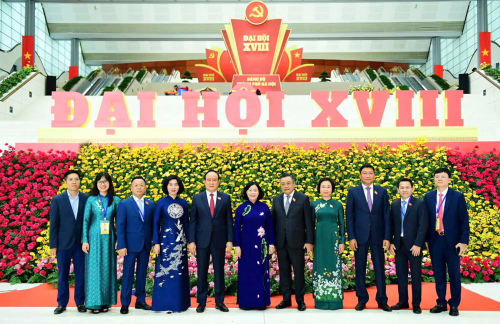 Về phía TP Hà Nội có: Ủy viên Bộ Chính trị, Bí thư Thành ủy, Trưởng đoàn đại biểu Quốc hội TP Hà Nội Bùi Thị Minh Hoài; Ủy viên Trung ương Đảng, Phó Bí thư Thành ủy, Chủ tịch UBND TP Hà Nội Trần Sỹ Thanh; Phó Bí thư Thường trực Thành ủy Hà Nội Nguyễn Văn Phong; Phó Bí thư Thành ủy, Chủ tịch HĐND TP Nguyễn Ngọc Tuấn... cùng gần 550 đại biểu ưu tú, đại diện gần 50 vạn đảng viên của toàn Đảng bộ TP.