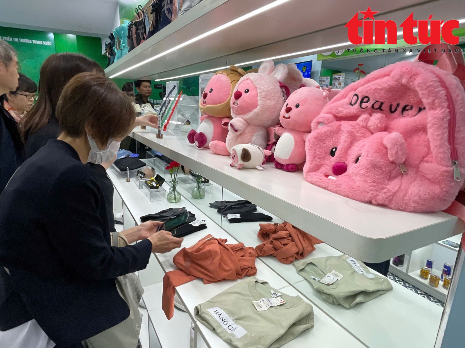 Điểm nhấn đáng chú ý là sự xuất hiện của nhiều sản phẩm do Hiệp hội Sở hữu trí tuệ Nhật Bản cung cấp phục vụ trưng bày, giới thiệu tới người tiêu dùng Việt Nam, gồm: Giày thể thao Asics, vợt cầu lông Yonex, pin máy ảnh Canon, mỹ phẩm Transino, khóa kéo YKK, bugi NGK… Đây đều là những dòng sản phẩm có nhu cầu tiêu thụ lớn, dễ bị làm giả do giá trị cao. Tại phòng trưng bày, mỗi sản phẩm đều có đối chứng thật - giả rõ ràng, giúp khách tham quan trực tiếp so sánh, nhận diện từng chi tiết khác biệt, từ chất liệu, kiểu dáng đến tem nhãn một cách trực quan và sinh động.