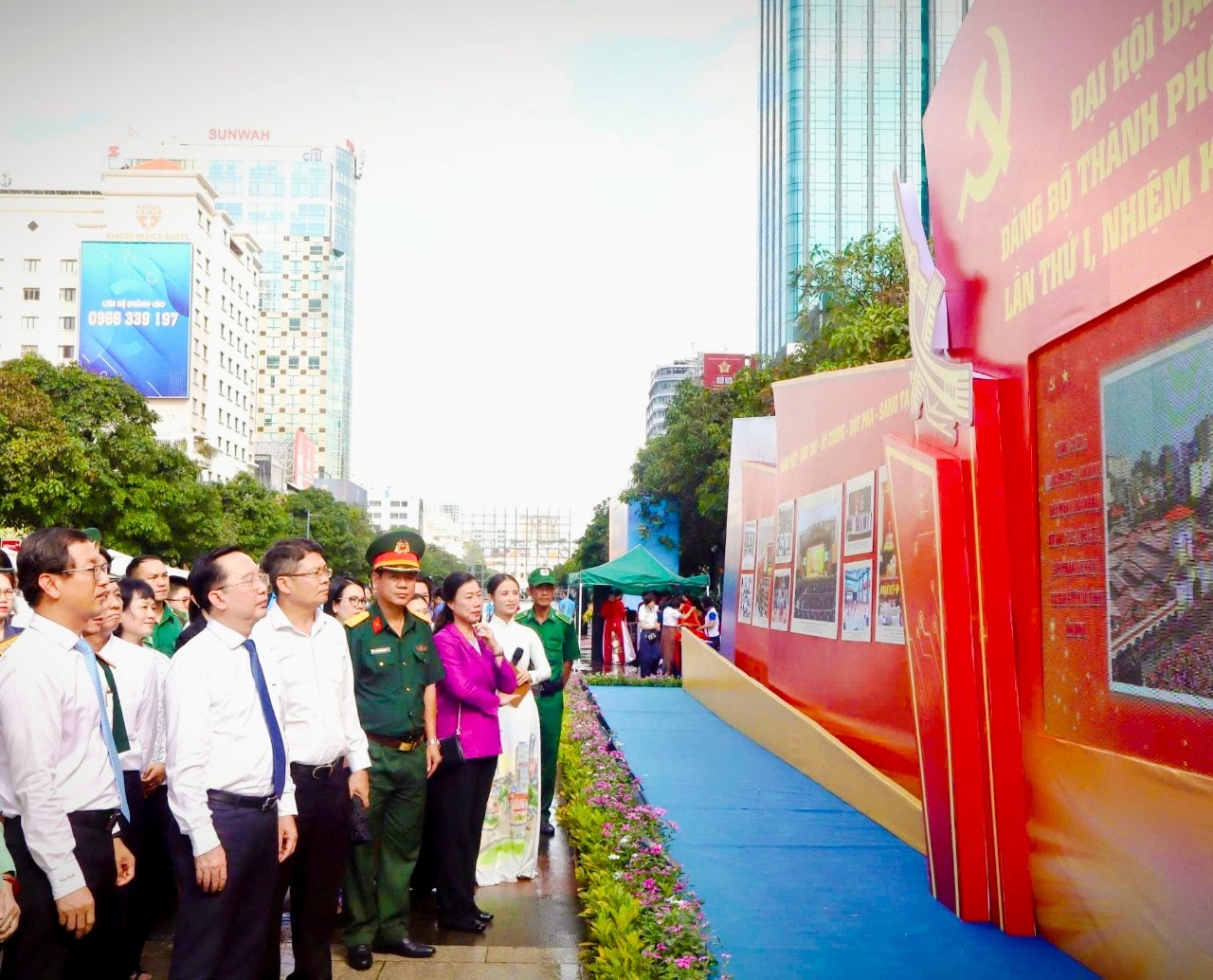 Tại mỗi điểm, Ban tổ chức trưng bày 120 hình ảnh với chủ đề chính “Đảng bộ thành phố Hồ Chí Minh: Tự tin, vững vàng bước vào kỷ nguyên mới, kỷ nguyên vươn mình của dân tộc”. Bộ ảnh giới thiệu các kỳ Đại hội đại biểu Đảng bộ thành phố Hồ Chí Minh và Đảng bộ tỉnh Bình Dương, Đảng bộ tỉnh Bà Rịa - Vũng Tàu trước đây.