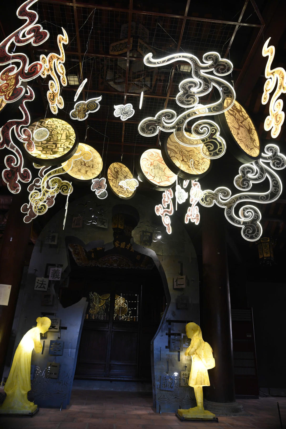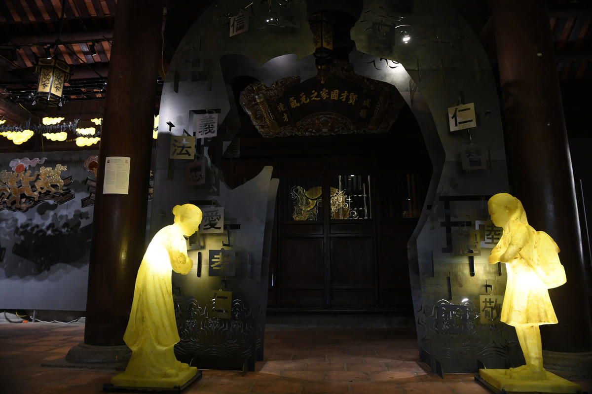 Không gian trưng bày được triển khai qua ba nội dung chính gồm: Không gian “Đạo học của người xưa”, giới thiệu các sáng tác về việc học hành, thi cử, đỗ đạt; Hình tượng thầy – trò"; các biểu tượng của tri thức, đạo lý và văn hóa; hành trình tu dưỡng, đem tài năng phụng sự đất nước, giúp dân của các bậc hiền nhân. Ảnh: Phạm Sỹ.