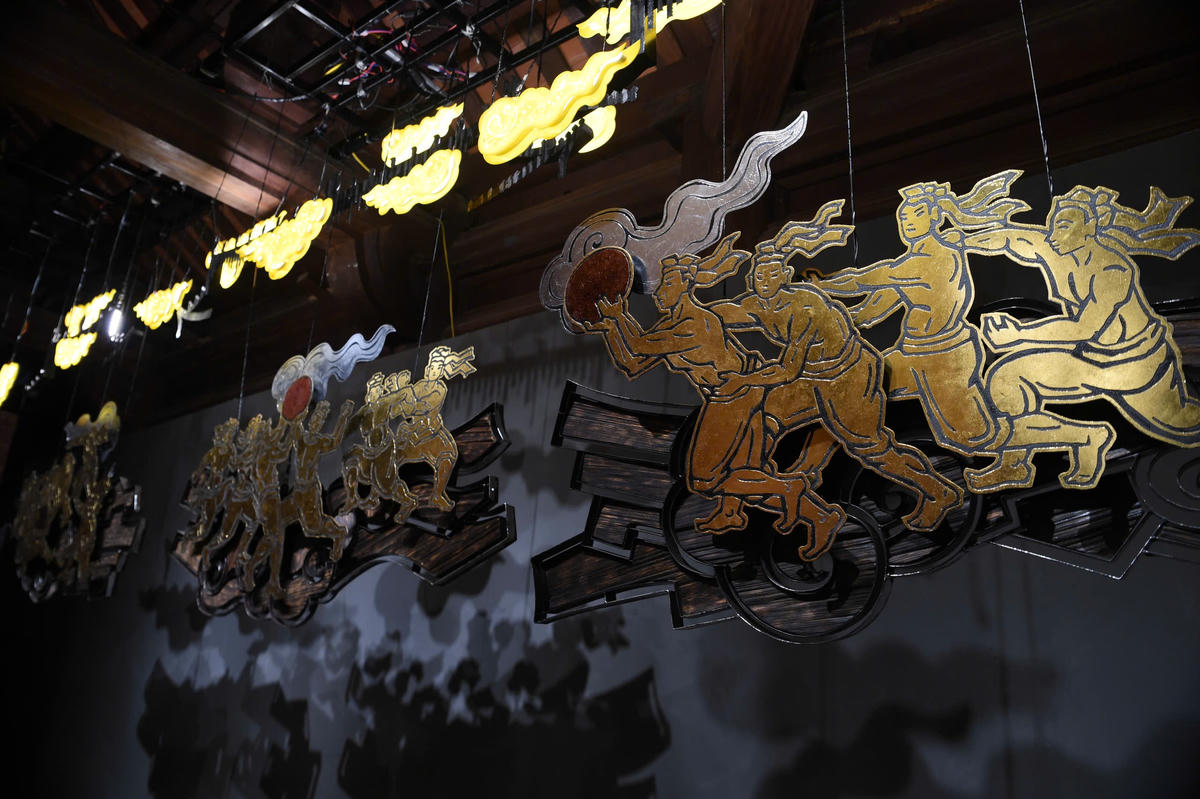 Nhiều tác phẩm lấy cảm hứng từ các hình tượng tiêu biểu của văn hóa Việt Nam như Chu Văn An, sĩ tử, sao Khuê, rồng – phượng, lễ hội truyền thống, qua đó khắc họa hành trình học tập, tu dưỡng và phụng sự của con người Việt Nam qua các thời đại. Ảnh: Phạm Sỹ.