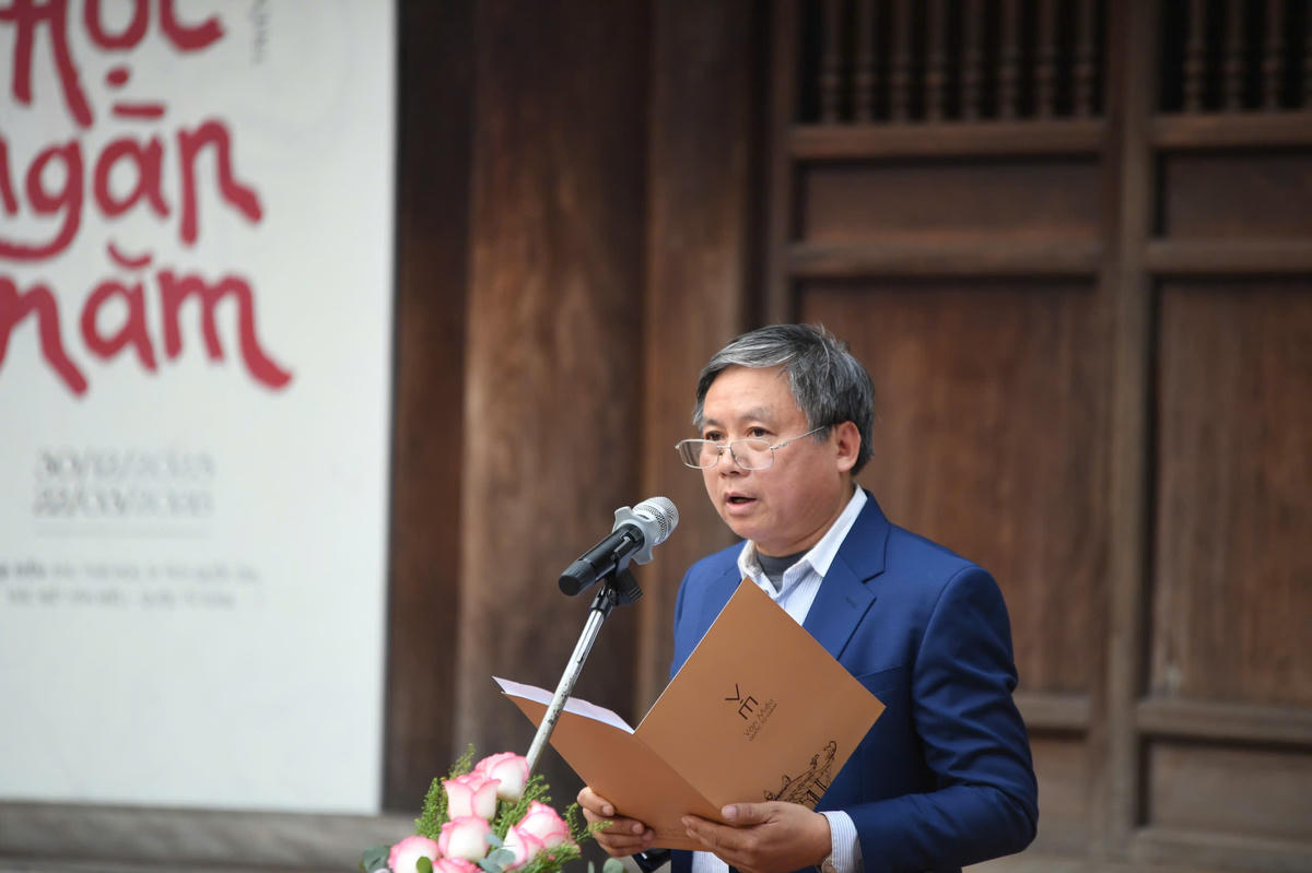 Ông Nguyễn Văn Tú – Phó Giám đốc Trung tâm HĐVHKH Văn Miếu – Quốc Tử Giám phát biểu tại lễ khai mạc triển lãm “Đạo học ngàn năm”. Ảnh: Phạm Sỹ.