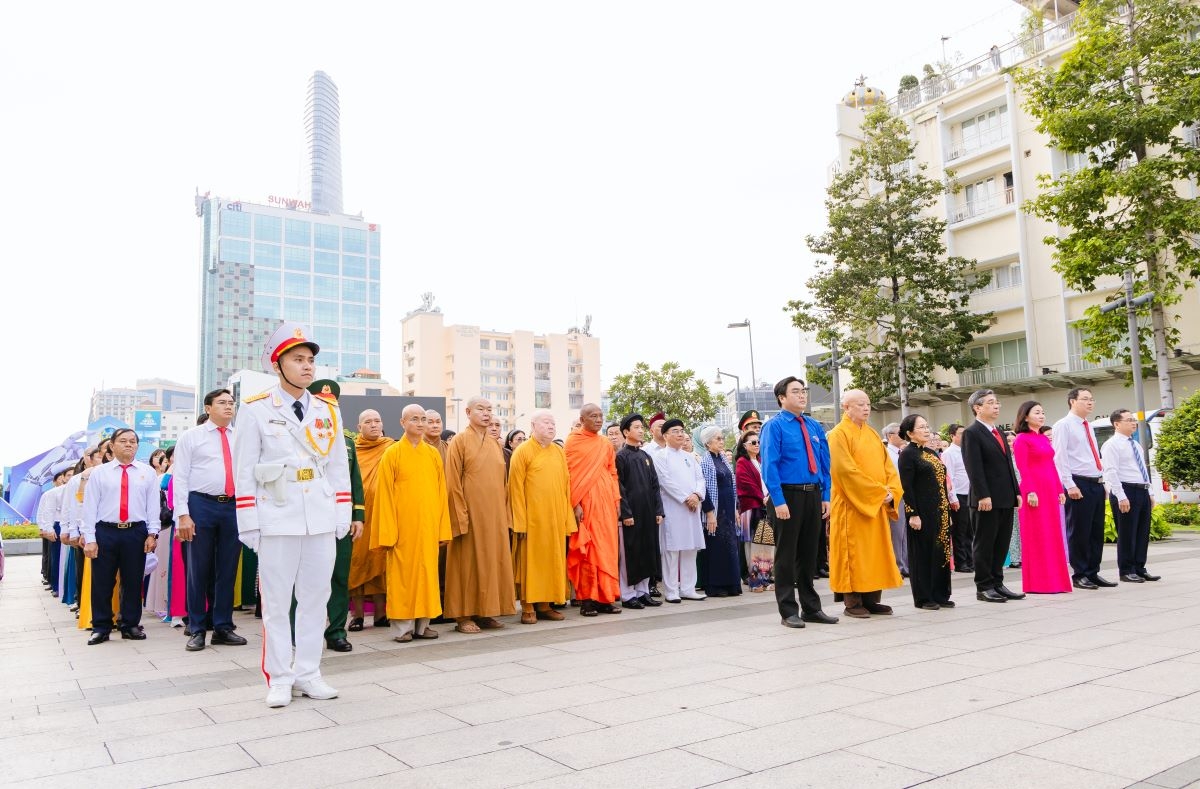 Các đại biểu dự lễ dâng hoa tượng đài Chủ tịch Hồ Chí Minh (ảnh: MTTQ TP.HCM)
