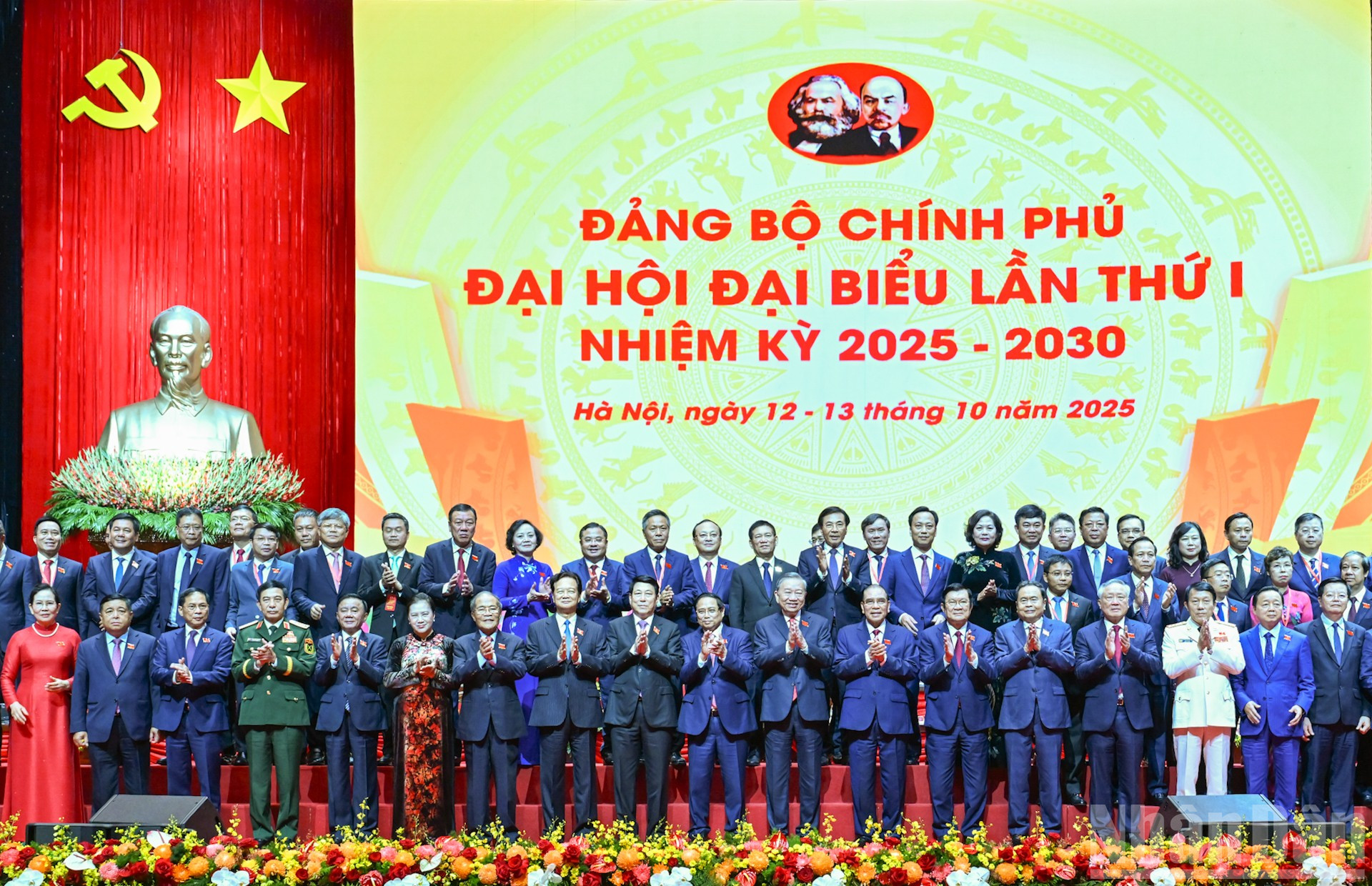 Tổng Bí thư Tô Lâm tặng hoa chúc mừng Đại hội Đảng bộ Chính phủ lần thứ I.