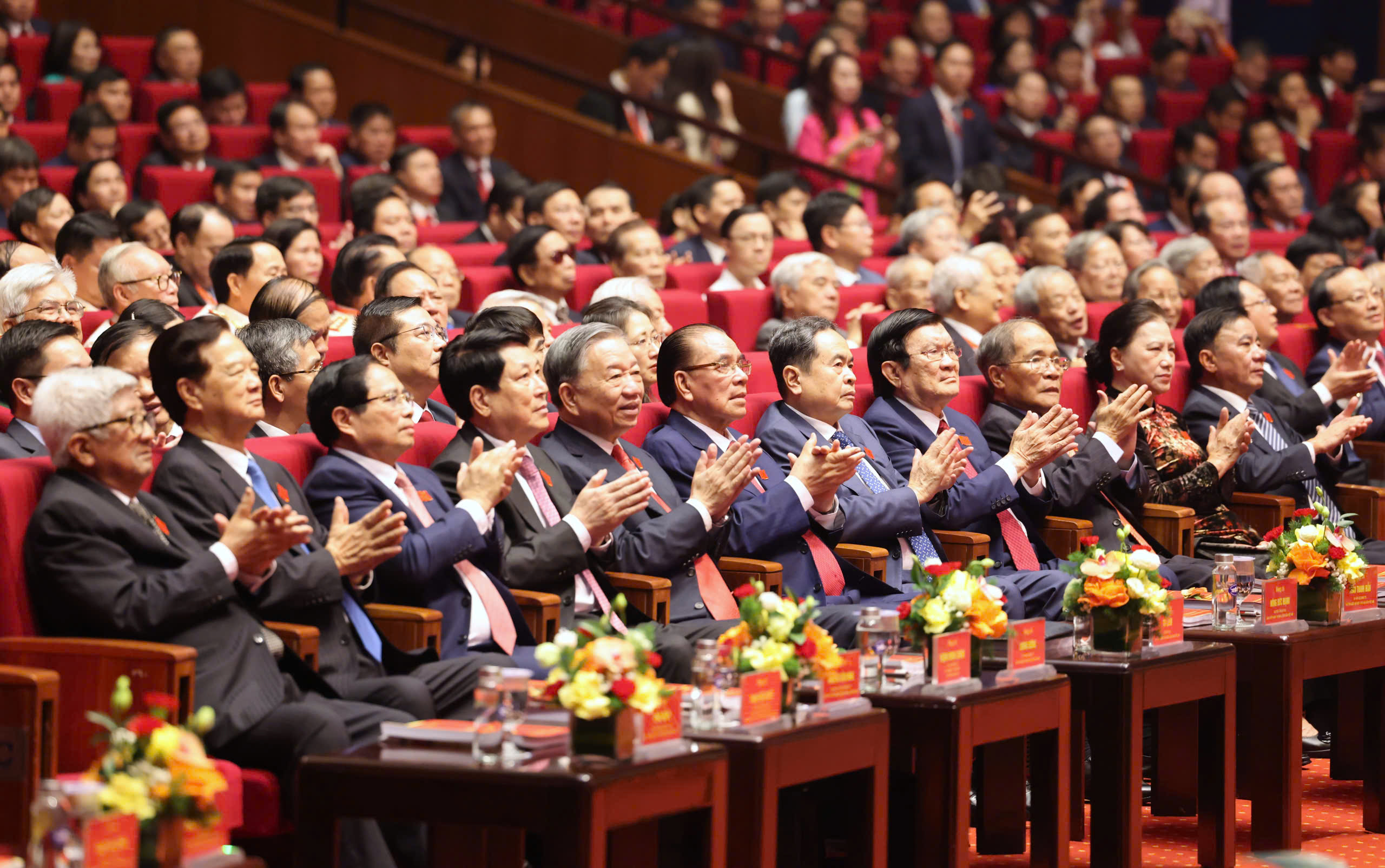 Các đồng chí lãnh đạo, nguyên lãnh đạo Đảng, Nhà nước dự đại hội. Ảnh: QUANG PHÚC