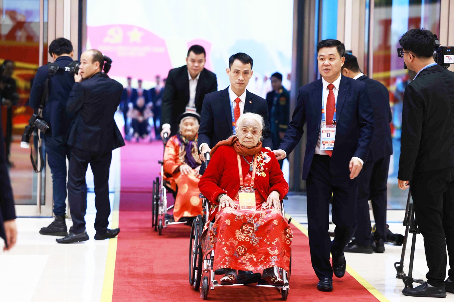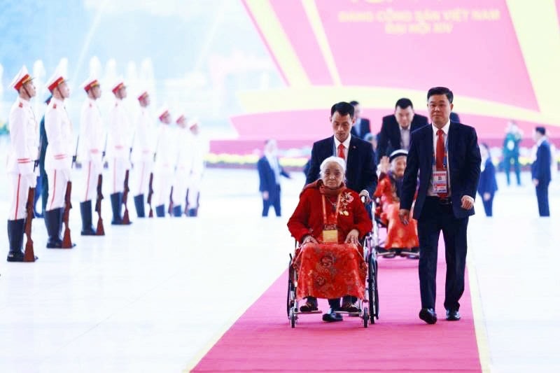 Các đại biểu Mẹ Việt Nam Anh hùng đến dự phiên khai mạc Đại hội XIV của Đảng
