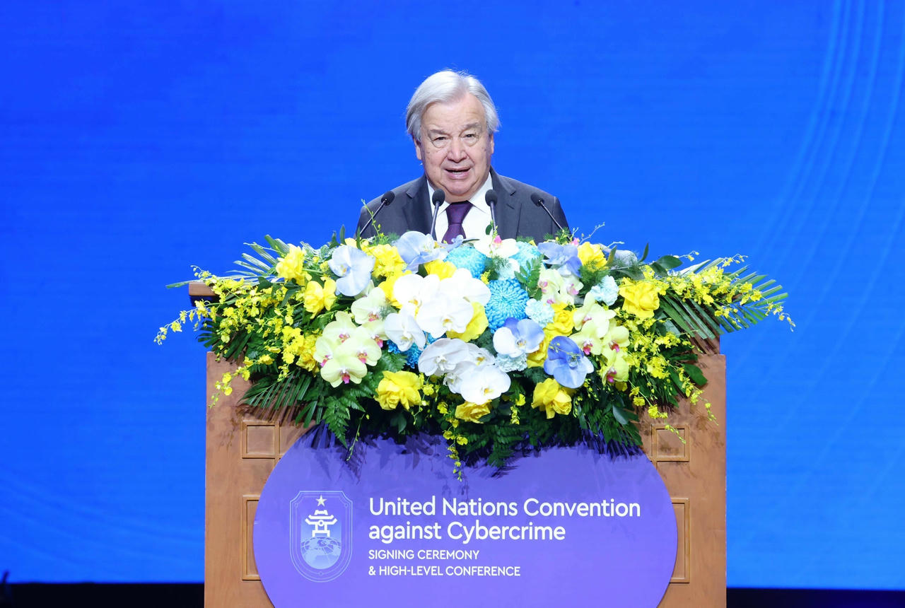 Ông Guterres khẳng định, Công ước Hà Nội là hiệp ước tư pháp hình sự toàn cầu đầu tiên sau hơn hai thập kỷ, tạo khuôn khổ pháp lý chung để các quốc gia phối hợp chống tội phạm mạng..