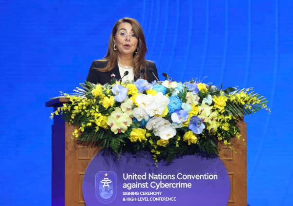 "Tại hội nghị này, quý vị sẽ đặt bút ký vì một tương lai an toàn hơn cho tất cả mọi người, cả trong thế giới thực và trên không gian mạng. Một tương lai nơi tội phạm mạng không còn chốn ẩn náu. Tôi hy vọng quý vị sẽ cùng tham gia, ủng hộ và đầu tư vào Công ước của LHQ về chống tội phạm mạng để biến tương lai ấy thành hiện thực - một thế giới tốt đẹp hơn, an toàn hơn và thịnh vượng hơn cho tất cả", bà Ghada Waly khẳng định.