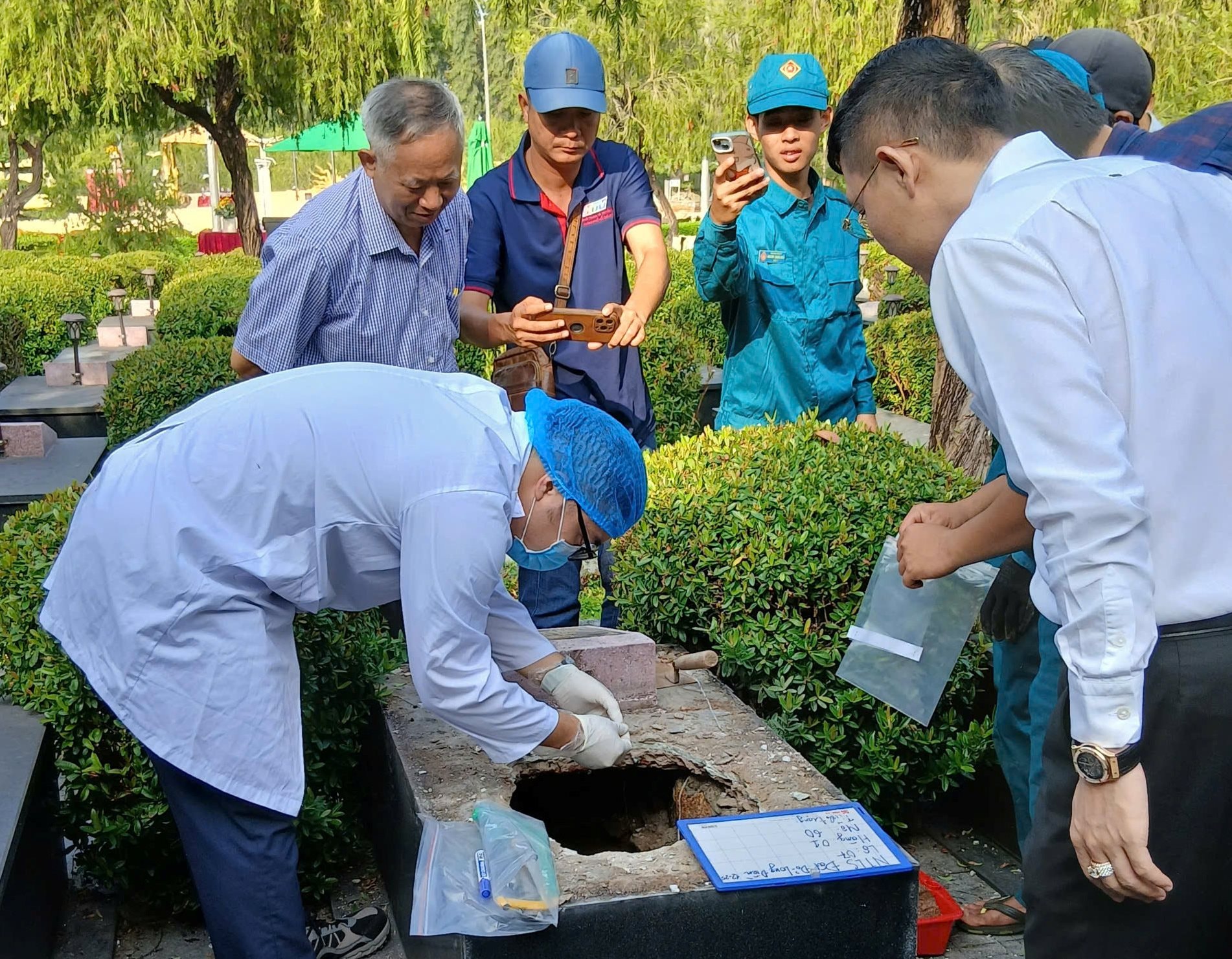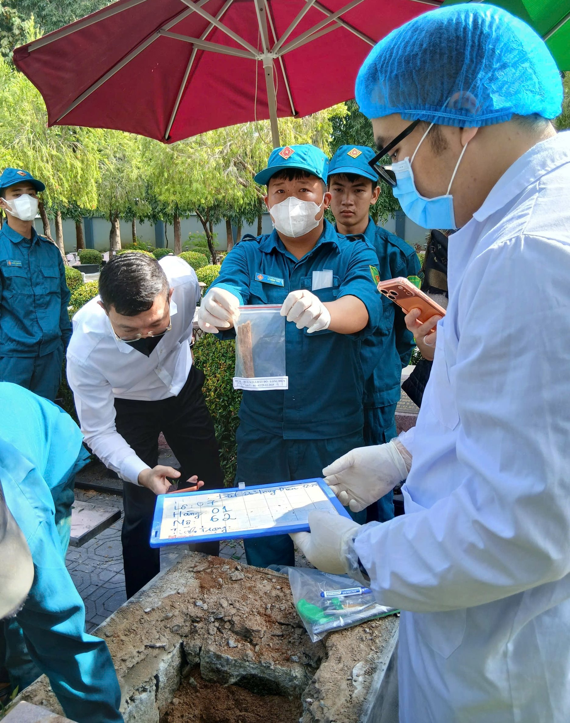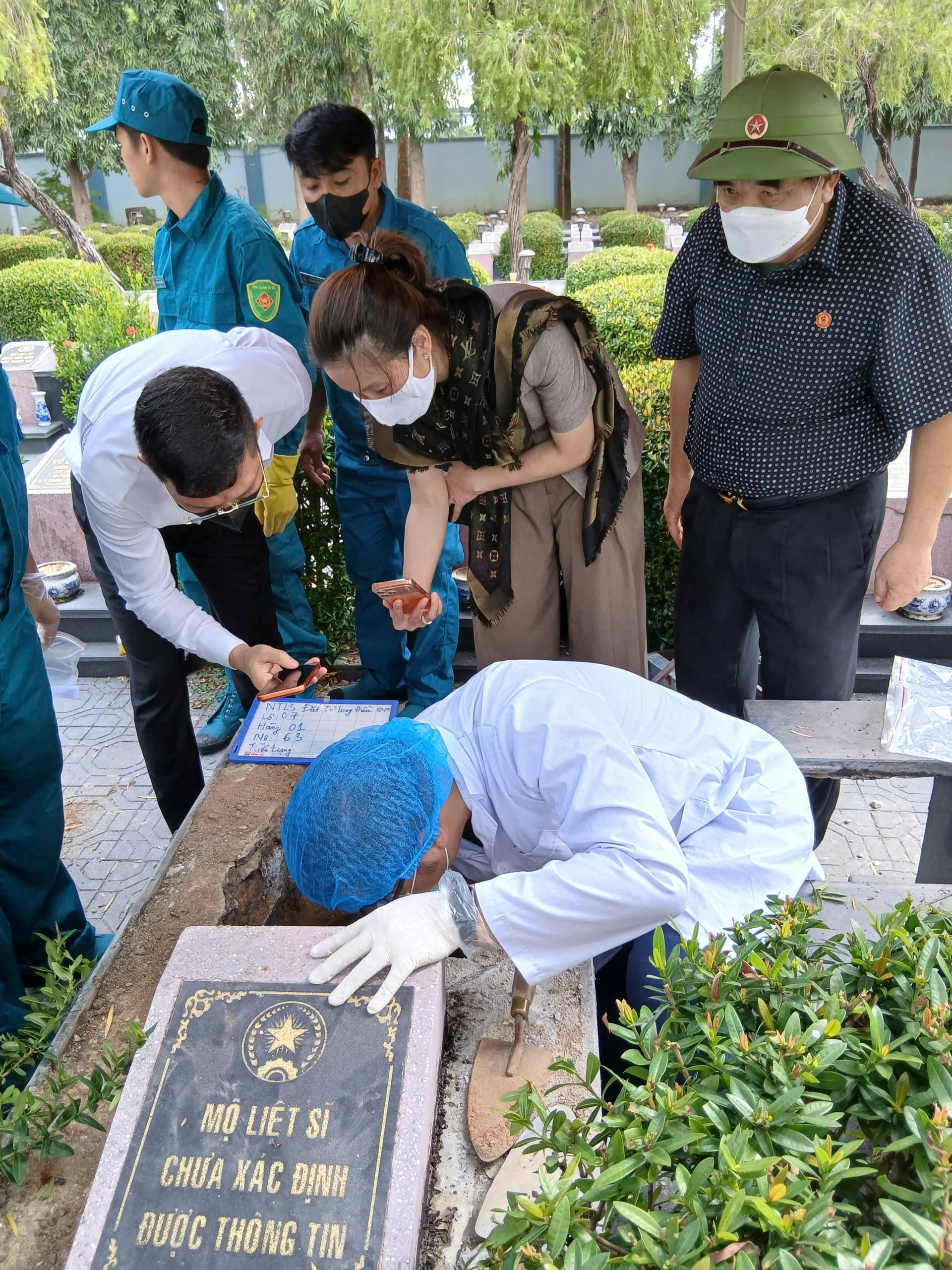 Sau khi hoàn tất, dưới sự chứng kiến và giám sát của các cơ quan chức năng, mẫu hài cốt được bàn giao từ Ban Quản lý Nghĩa trang cho Sở Nội vụ, sau đó chuyển đến đơn vị giám định ADN theo đúng quy định.