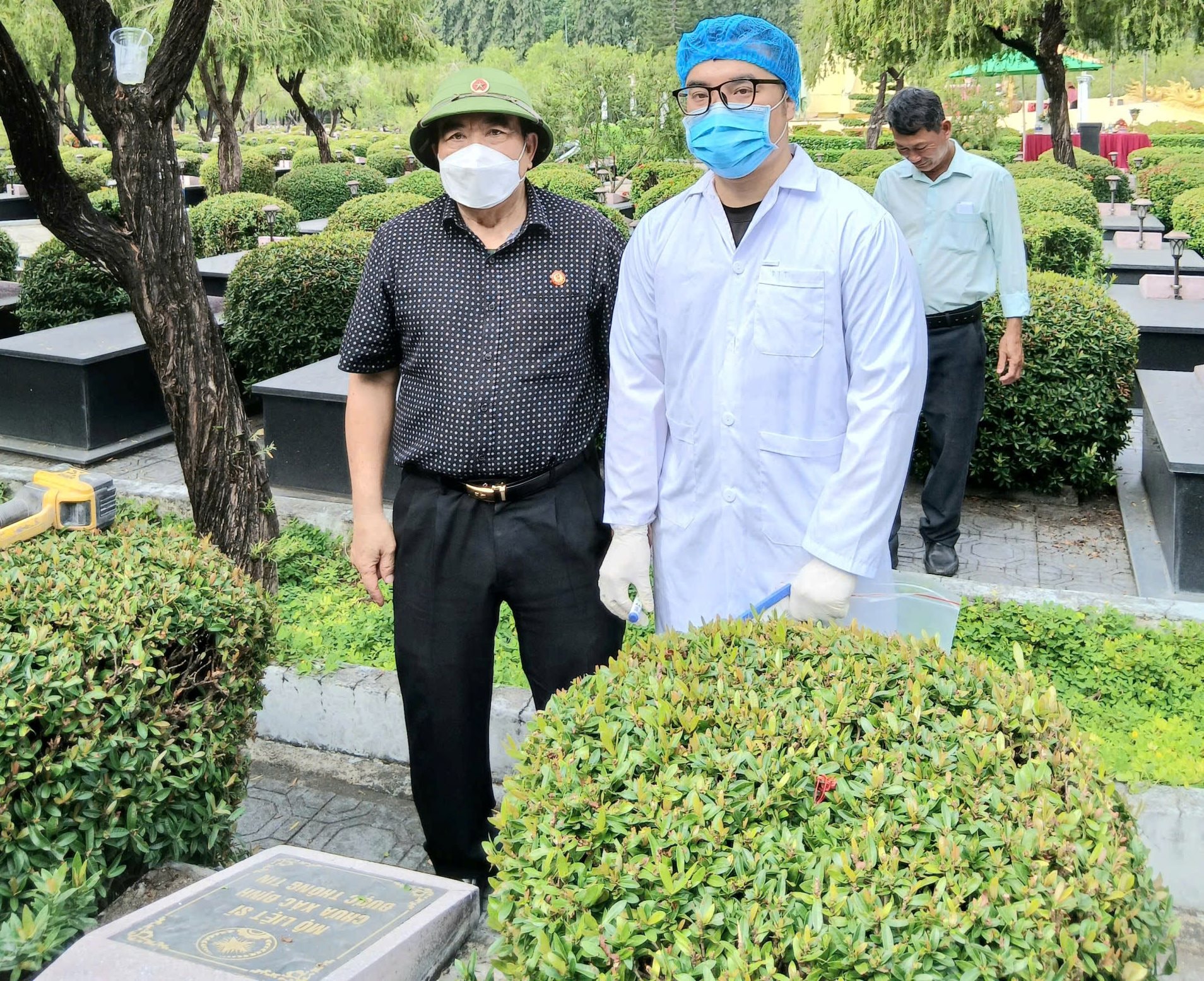 Tại đây, bác sĩ của Trung tâm Giám định ADN (thuộc Viện Công nghệ sinh học - Viện Hàn lâm Khoa học và Công nghệ Việt Nam) trực tiếp thực hiện việc lấy mẫu hài cốt liệt sĩ.