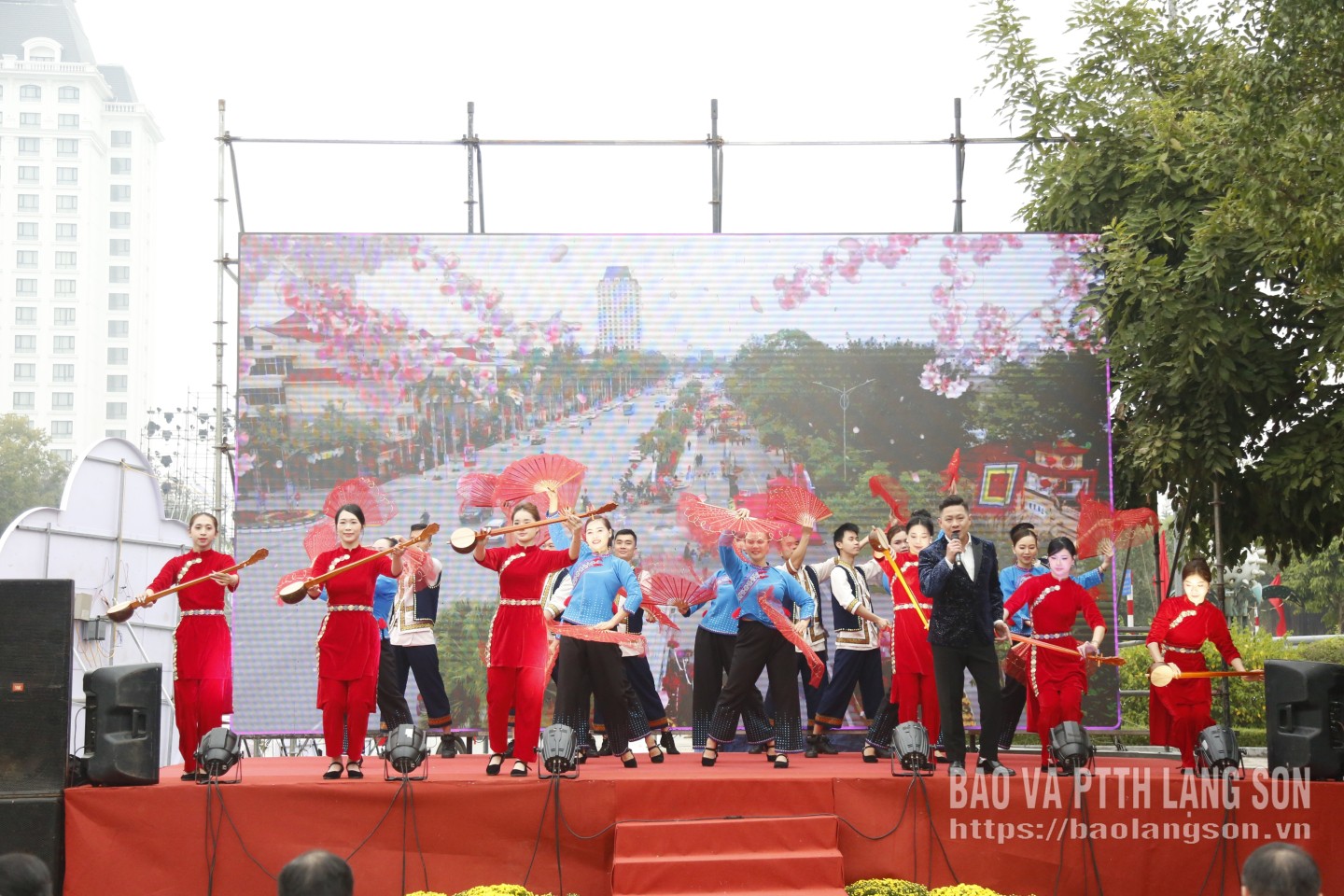 Trong chương trình, các đại biểu đã thực hiện nghi thức ấn nút khai trương Đường hoa xuân xứ Lạng; khai mạc triển lãm Di sản văn hóa vùng công viên địa chất toàn cầu UNESCO Lạng Sơn.