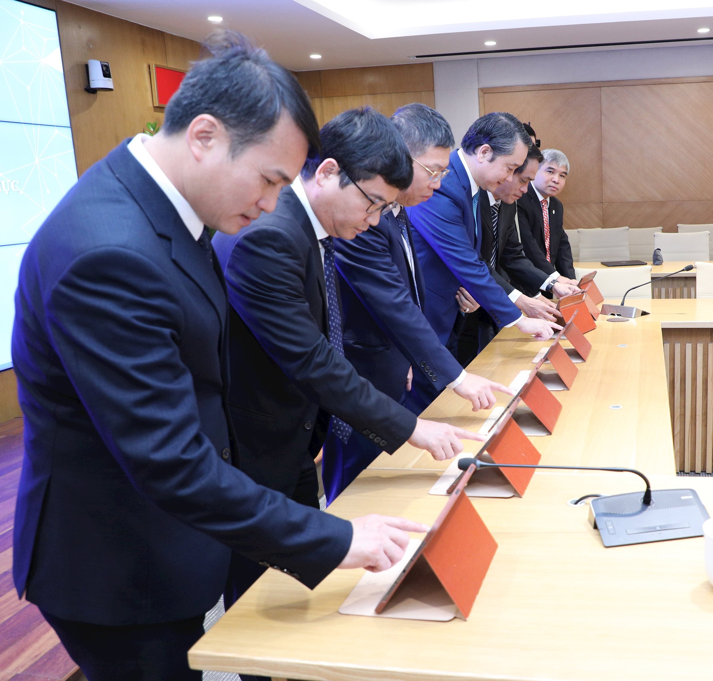 Các đại biểu ký hợp đồng điện tử cho các đề tài khoa học và công nghệ đã được duyệt