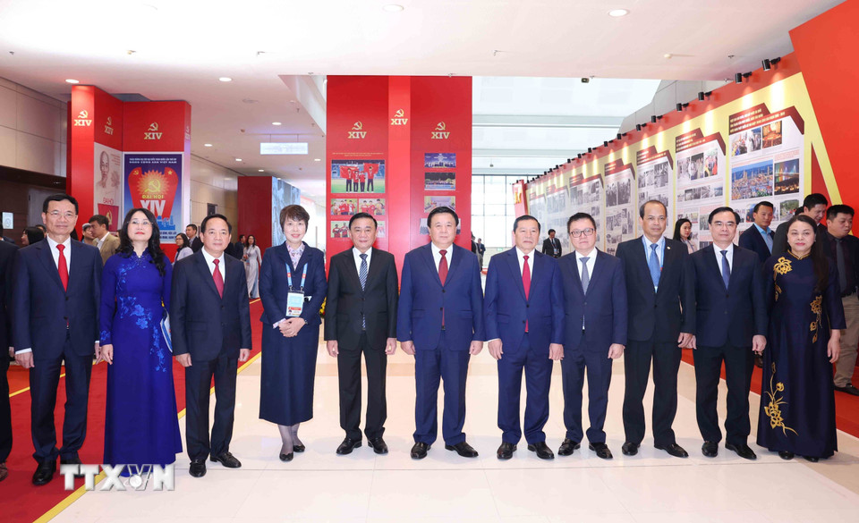 Thường trực Ban Bí thư Trần Cẩm Tú cùng các lãnh đạo Đảng, Nhà nước tham quan Trưng bày ảnh “Dưới cờ Đảng, đất nước tiến vào kỷ nguyên mới” do Thông tấn xã Việt Nam thực hiện. (Ảnh: Minh Quyết/TTXVN)