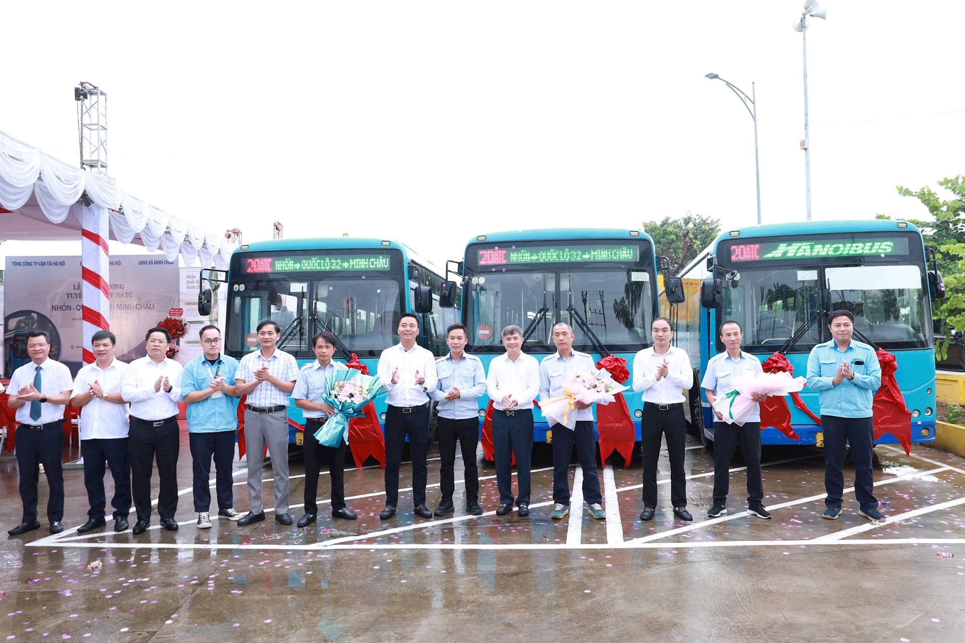 Các đại biểu tại lễ khai trương tuyến buýt 20ATC. Ảnh: Tuấn Lương