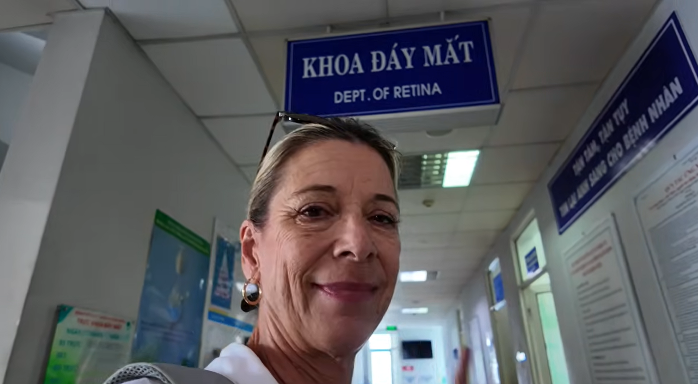Theo nội dung video, du khách Susan Lindgren (58 tuổi, quốc tịch Mỹ) trong thời gian lưu trú tại Đà Nẵng đã đến bệnh viện thăm khám khi xuất hiện triệu chứng đốm đen trong mắt.