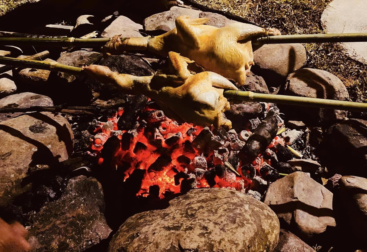Ẩm thực Khe Phương cũng là điểm nhấn không thể bỏ qua. Các món ăn gà đồi, cá khe, lợn bản, rau rừng, khoai sọ nương hay xôi nấu cùng dược liệu đều được người dân chế biến từ nguồn thực phẩm địa phương, tươi ngon và đậm chất núi rừng. Ảnh Am Váp Farm