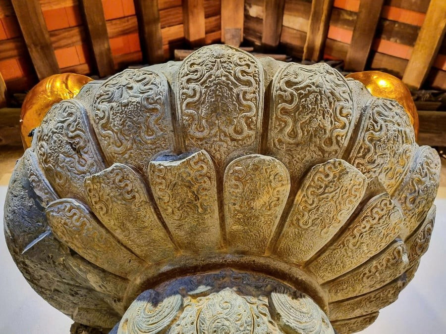Hoa văn rồng chầu tinh xảo trên bệ tượng thể hiện nghệ thuật thời Lý.