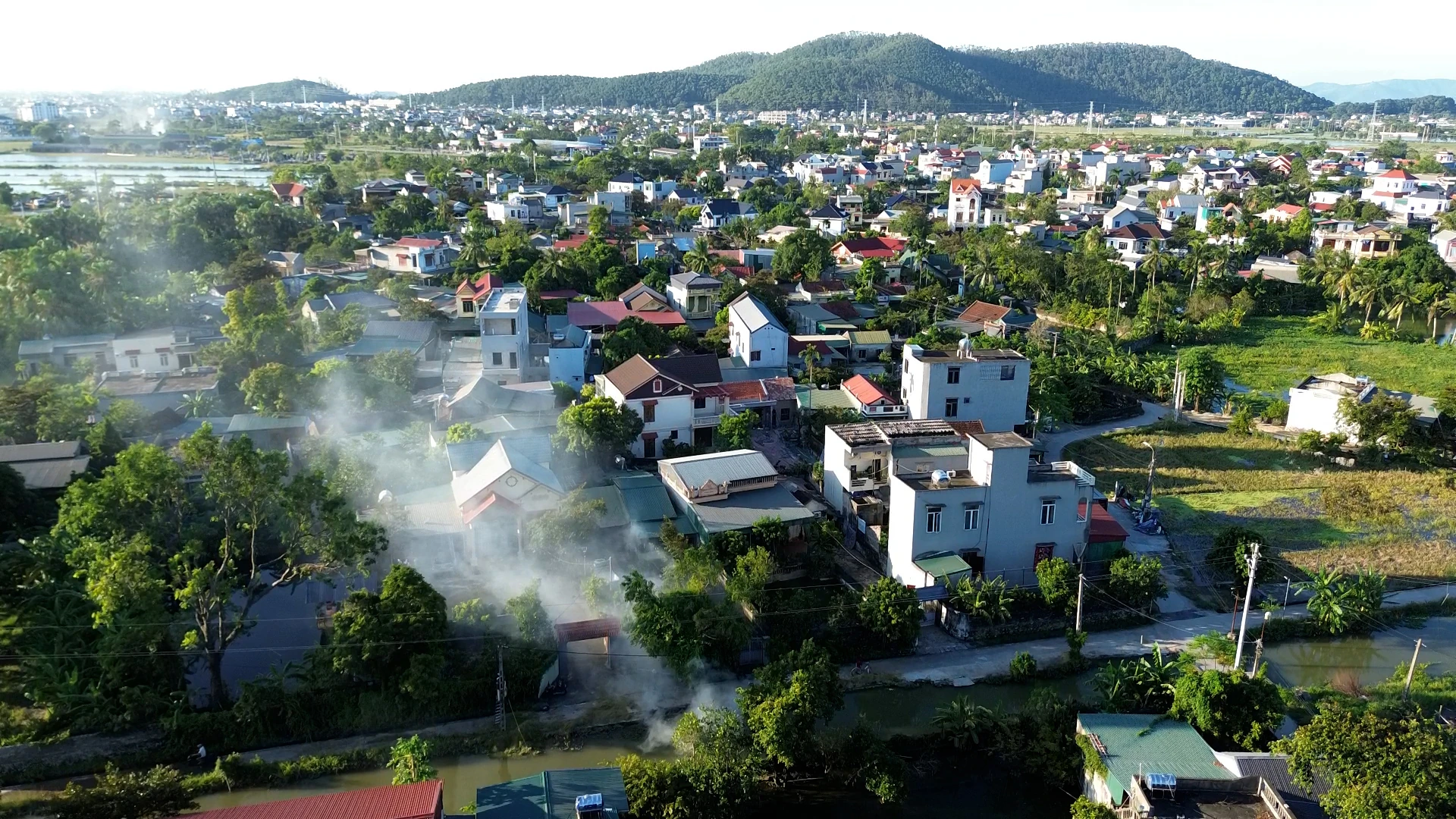 Từ trên cao nhìn xuống, trước mắt mở ra một vùng non nước hữu tình của xứ Thanh – nơi những nếp nhà ẩn hiện giữa màu xanh của cây lá, những cánh đồng mướt mát và dòng sông hiền hòa uốn lượn, tạo nên bức tranh vừa thanh bình, vừa gần gũi.