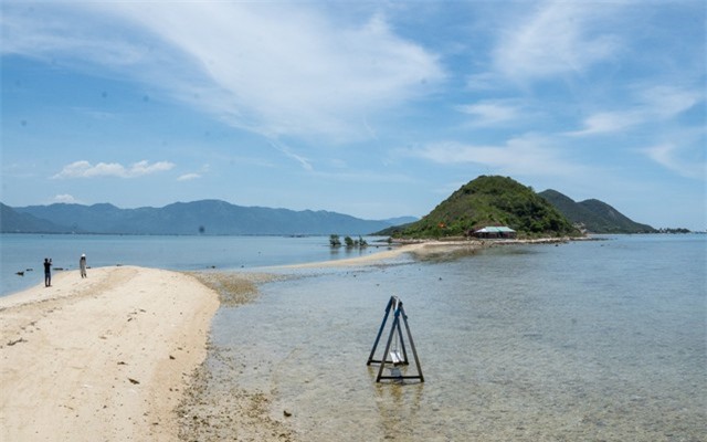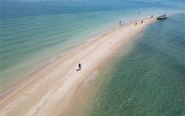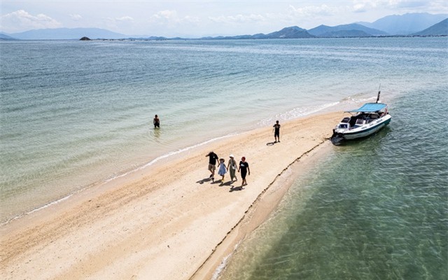 Khách thường tấp cano vào con đường cát trắng giữa biển để tắm mát, tản bộ