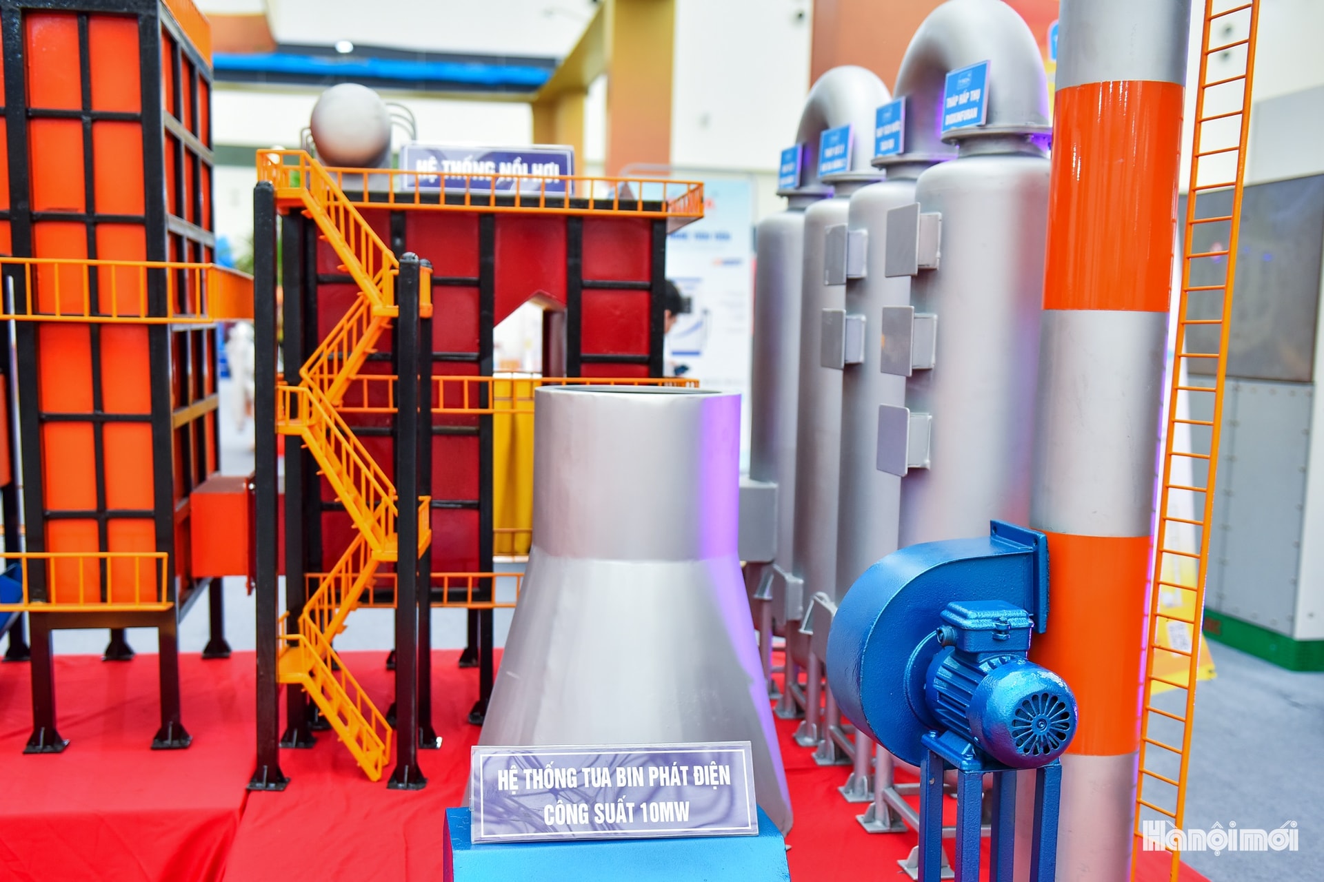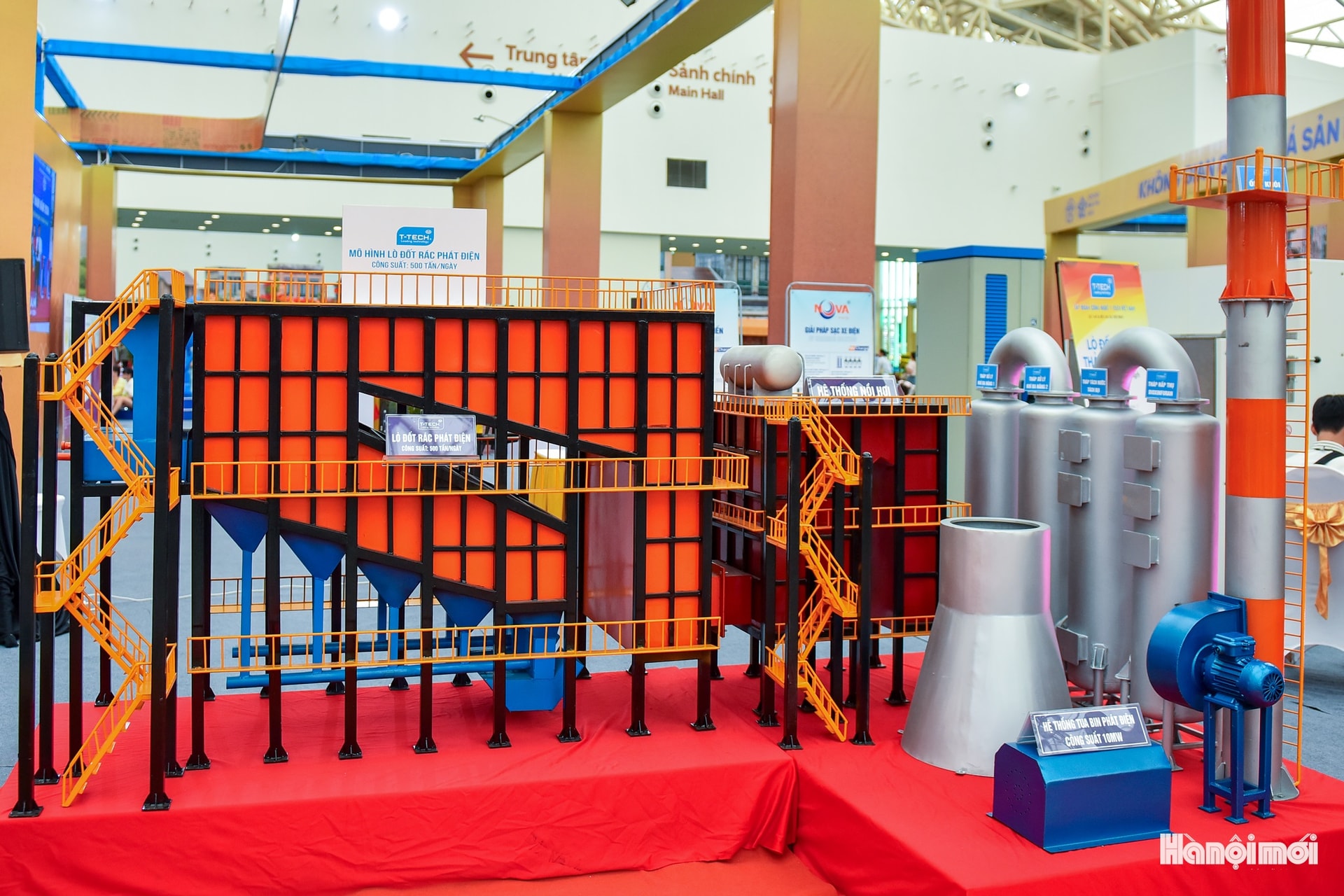 Mô hình nhà máy điện từ rác thải được giới thiệu tại hội chợ, thể hiện hướng phát triển năng lượng sạch và bền vững.