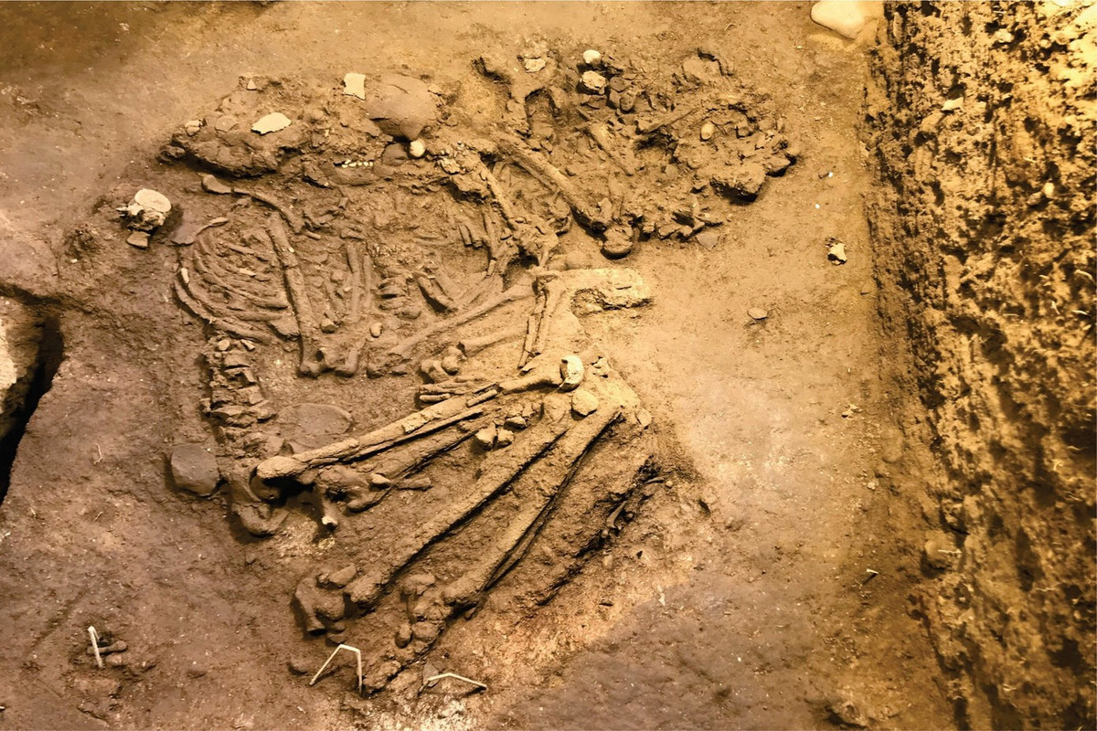 Di cốt người xưa được khai quật tại hố hang đội 4, vùng lõi quần thể Tam Chúc. Ảnh: Minh Đức / Báo Tiền Phong.